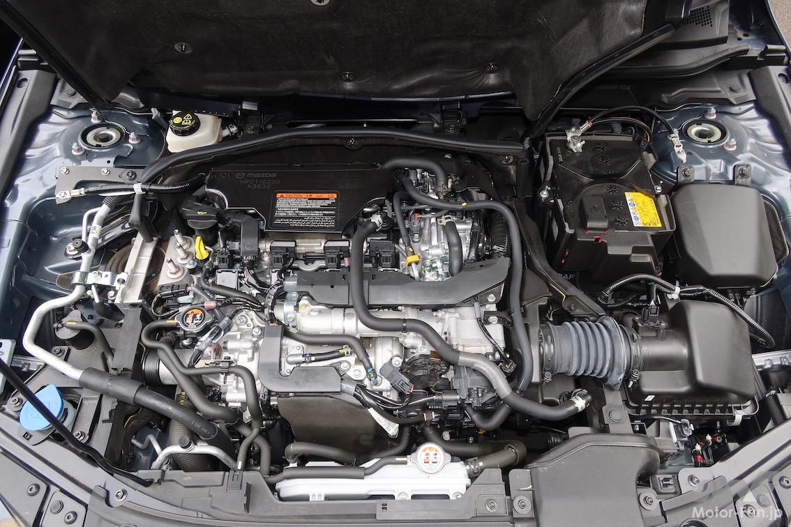 走りよりも燃費のための6速ギヤ比の変更だろう。5速から6速へのステップが大きくなったことに対してネガティブな変化は感じられなかった。新旧を比較してみれば、旧のほうが高速域で6速に入れたまま加速する際は元気に感じられるが(回転数が高いので当然だろう)、初めてe-SKYACTIV XのMT車に触れる人は、違和感なく受け入れるように思う。
