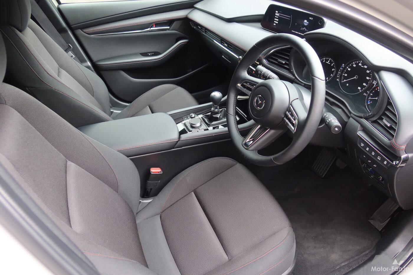 今回試乗したのは、Xブラックトーンエディションだ。オプションでドライビング・ポジション・サポート・パッケージ(6万6000円:運転席10Wayパワーシート&ドライビングポジションメモリー機能+運転席&助手席シートヒーター+ステアリングヒーター)や360°セーフティパッケージ(AT車)(8万6880円:360°ビュー・モニター+ドライバー・モニタリング)を装備しており、筆者が2021年に購入したX PROACTIVE Touring Selectionと同等の装備内容となっている。6速MTかつAWD(四輪駆動)であることも同じだ。筆者のMAZDA3は2020年11月の商品改良版なので、試乗車には約1年分の技術進化が反映されていることになる。