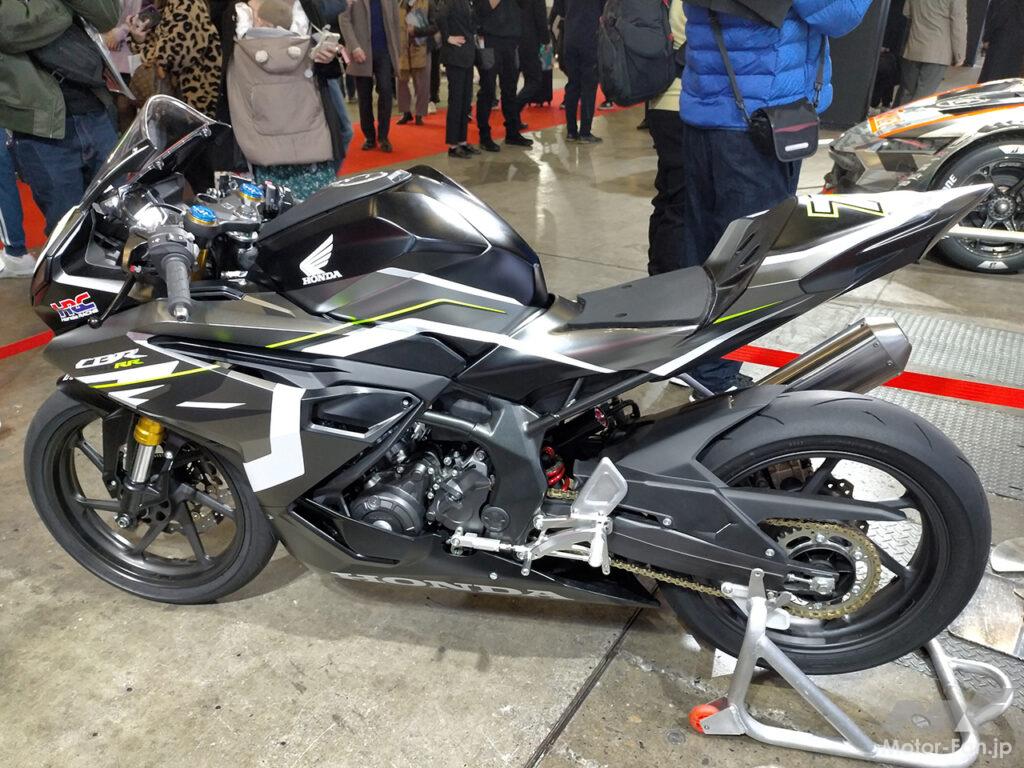 新型のホンダ CBR250RRは、最高出力を41馬力から42馬力にアップし、「トラクションコントロール(HSTC)を装備。また足周りを強化して2023年2月20日に発売される。一般公道仕様の同車をベースに、レース車両として仕上げたのが、写真の「CBR250RRレースベース車」だ。