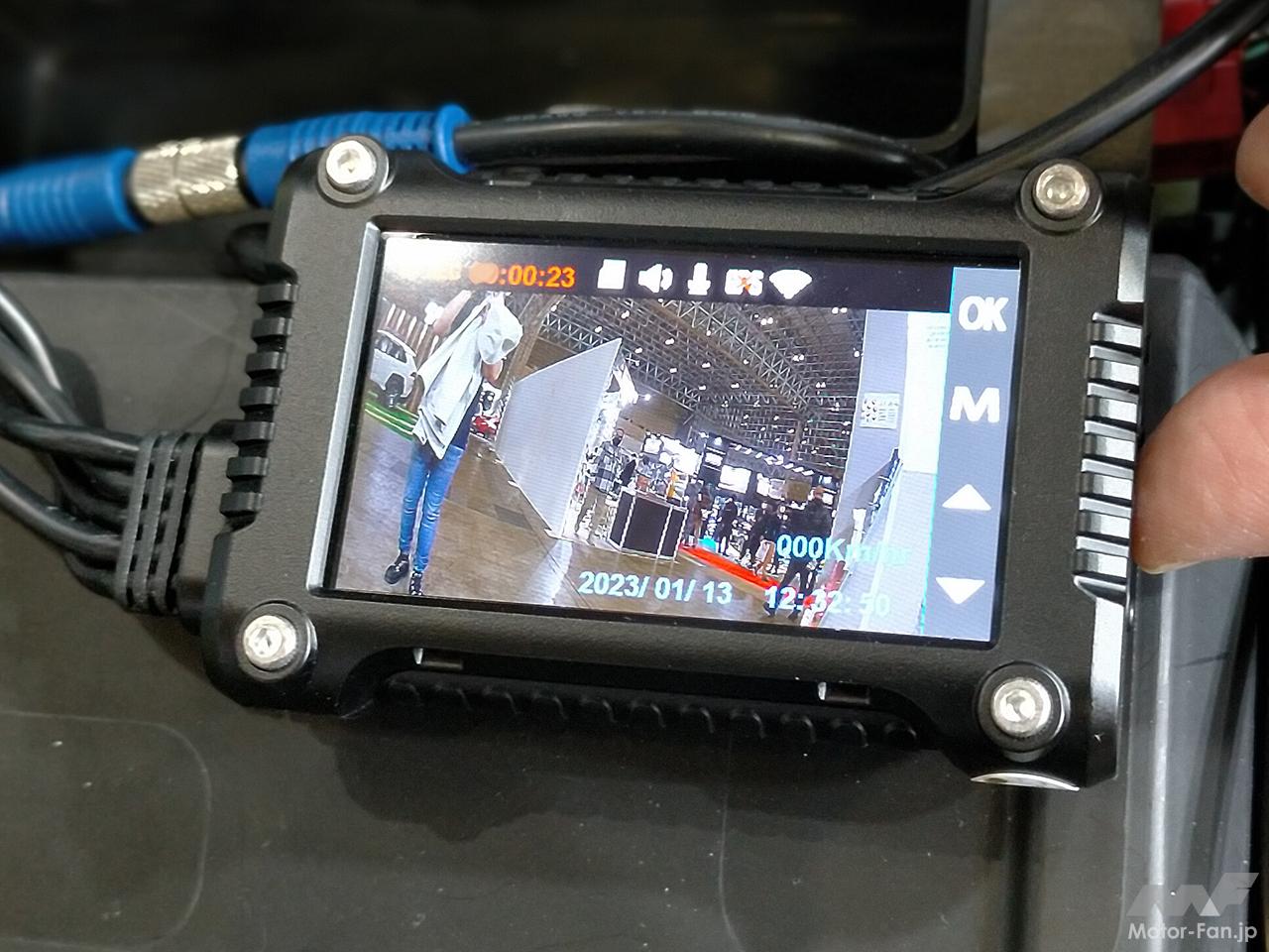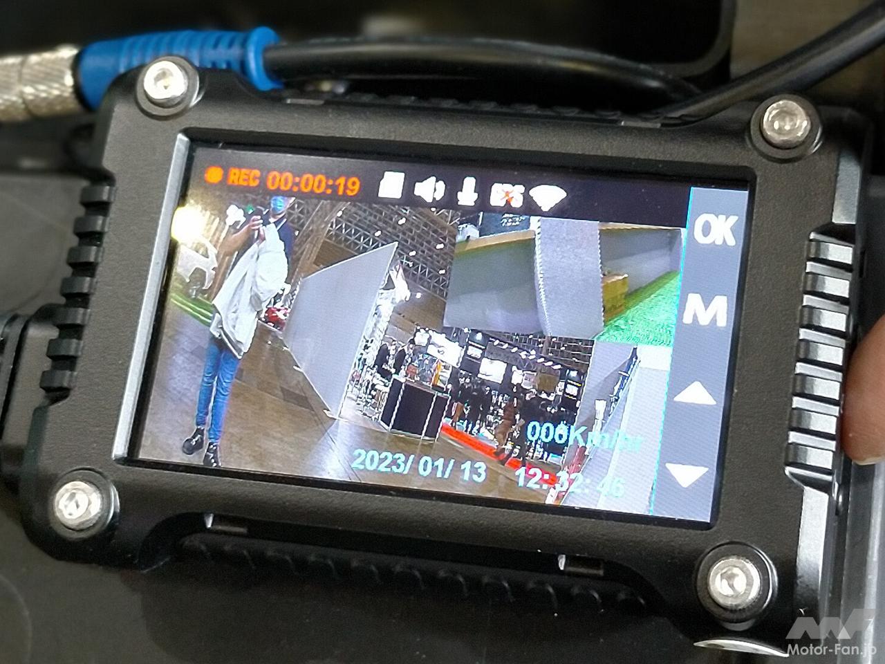今回展示されたZ2は、156度の広角レンズを備えた高性能カメラ(防水防塵機能:IP67)を前後に配置。画像解像度は1080pixelで、夜間でもキレイに録画され、ナンバープレートもはっきりと確認できる。