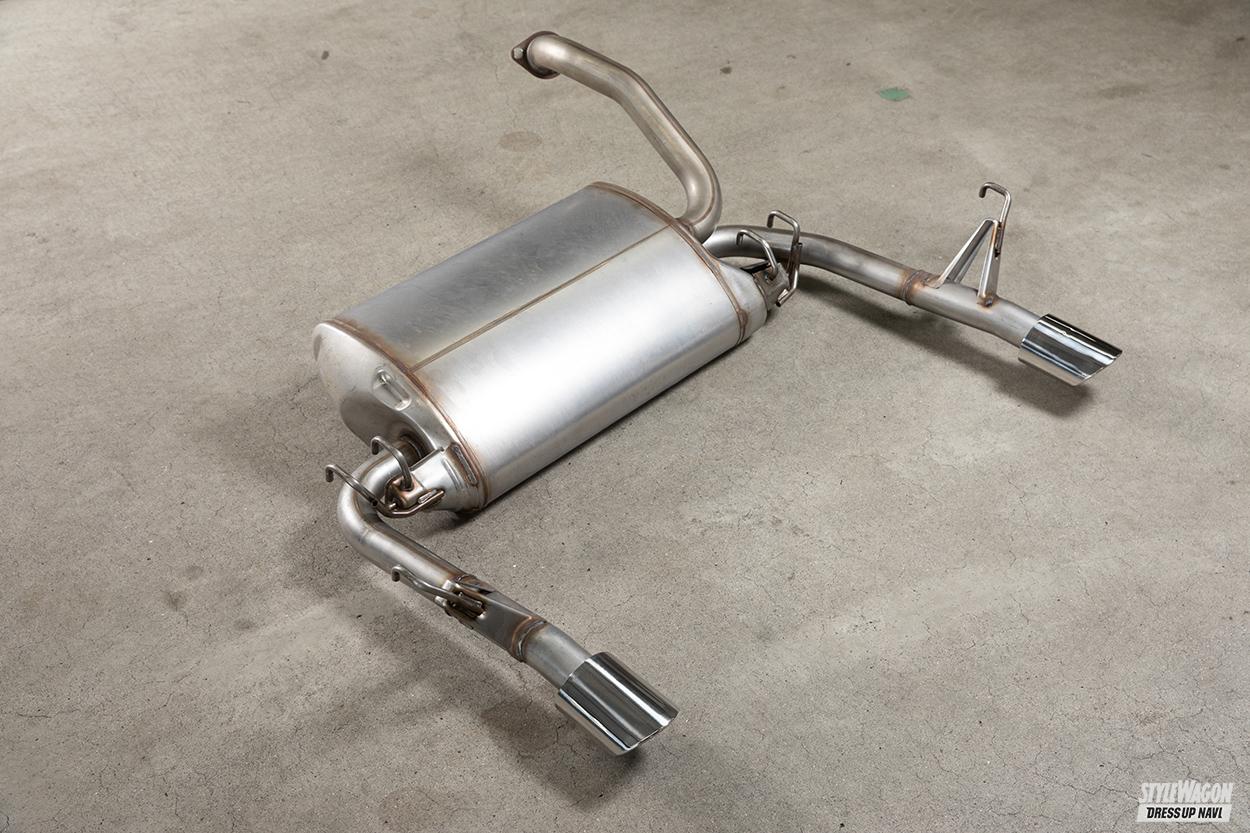 コスト優先の純正マフラーはパイプ径が細く、消音のためのタイコもかなり大きい。その内部は隔壁構造になっており排気効率は決してよくない。対してカスタムマフラーはパイプ径も太く、サイレンサーも小振りで排気がスムーズに抜ける仕組み。しかも最近のスポーツマフラーは低中速トルクを稼ぐ設計が主流で、アクセルを踏んだ瞬間にググッとクルマが前に進んでくれる。だから扱いやすいのだ。また重量も純正よりも軽くなるのが一般的で、運動性能の向上も期待できる。さらに耐久性も高いとメリットだらけなのがカスタムマフラーの魅力なのだ。