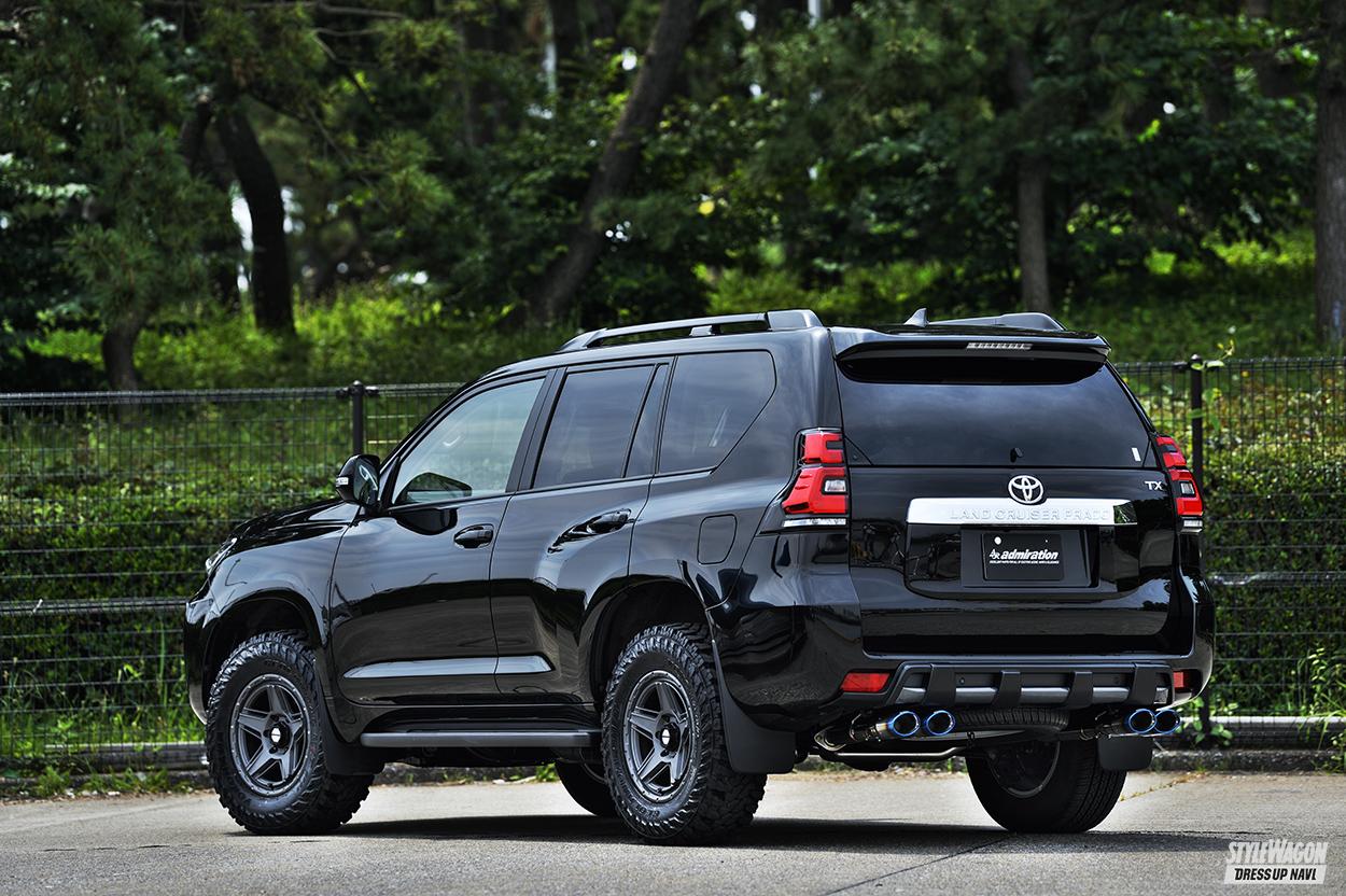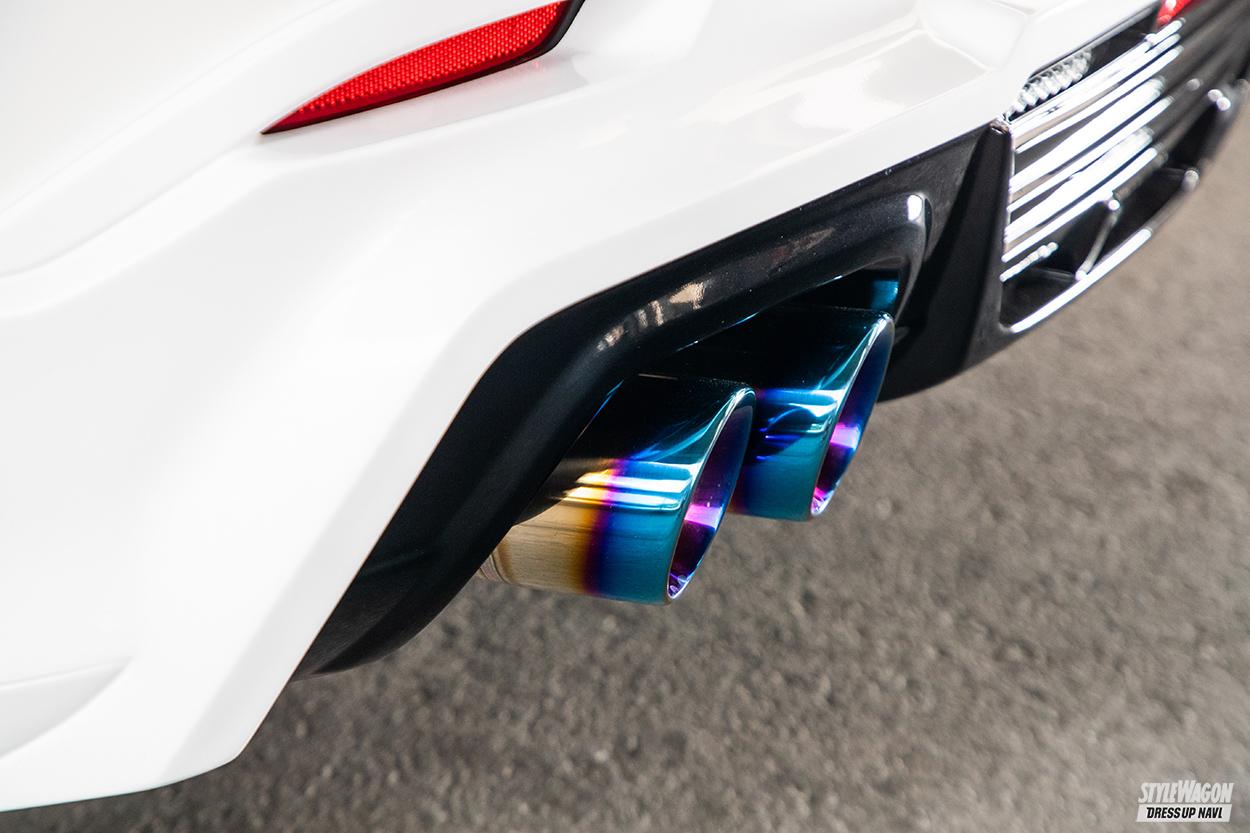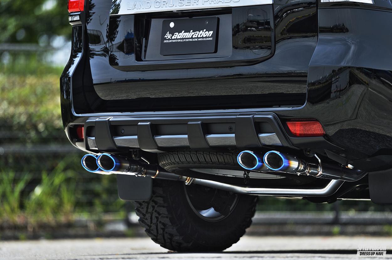 アドミレイションは、エアロからホイール、内装まで幅広くオリジナルパーツを手掛ける業界屈指のドレスアップブランドであり、マフラーシリーズの「エグゼクティブマフラー」も注目パーツのひとつ。特に、同社エアロシリーズに専用設計された絶妙な組合せは、トータルバランスを意識した唯一無二のスタイルを実現できる。