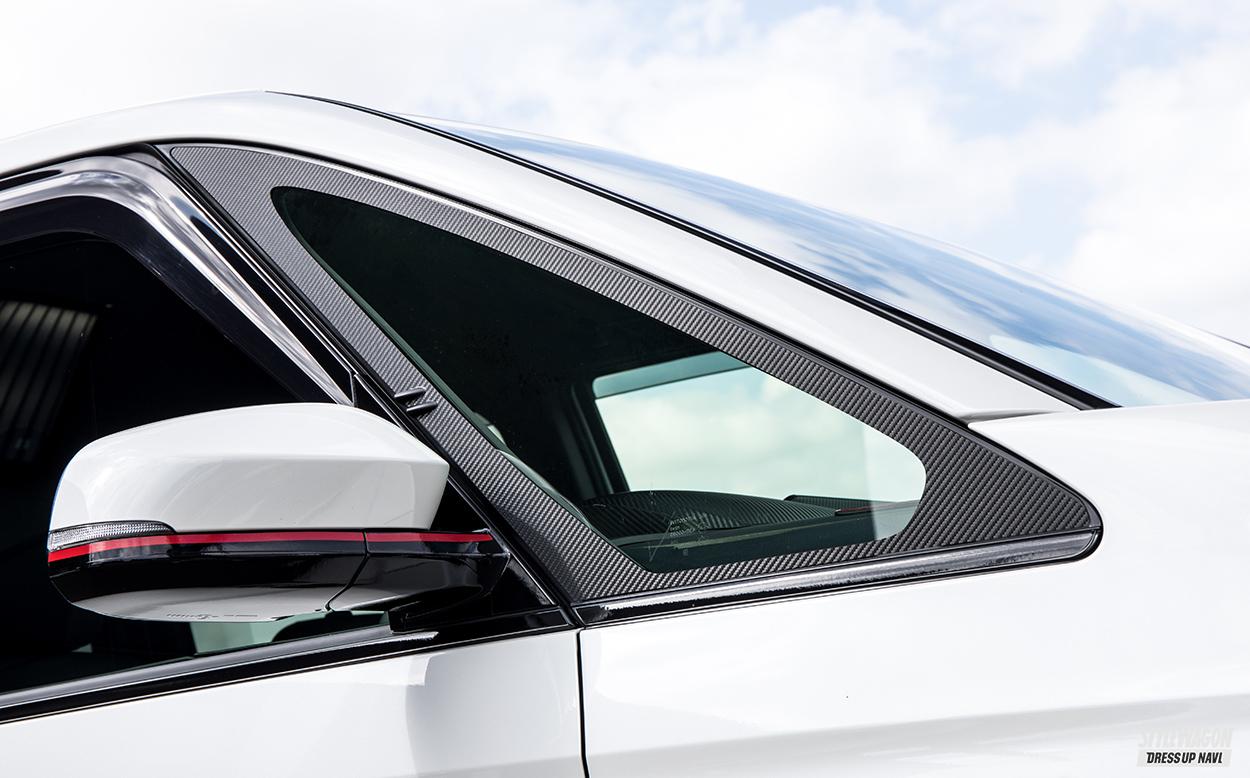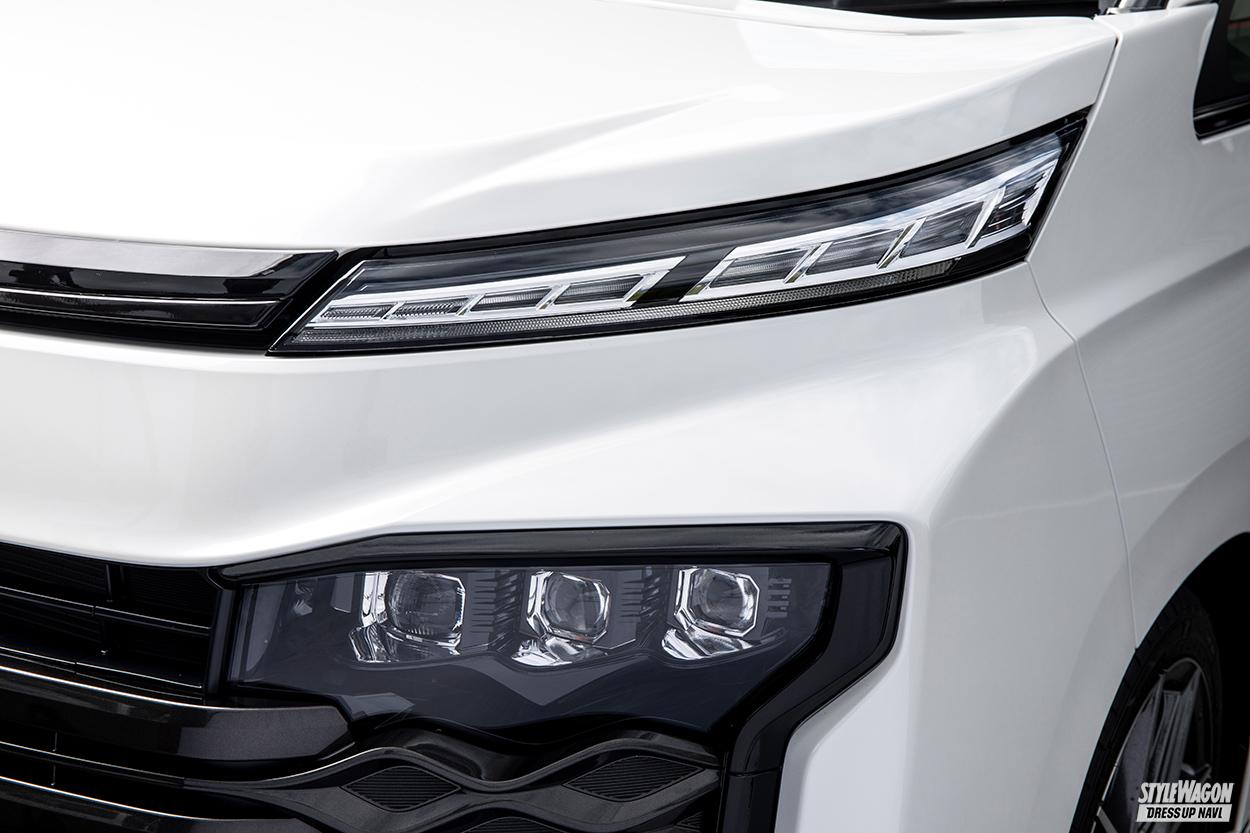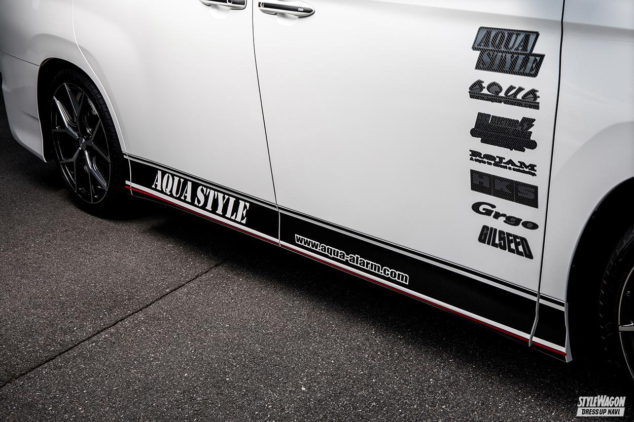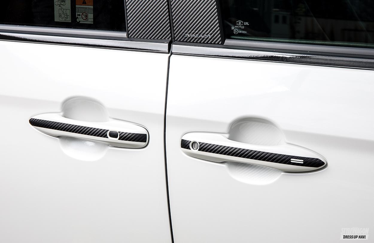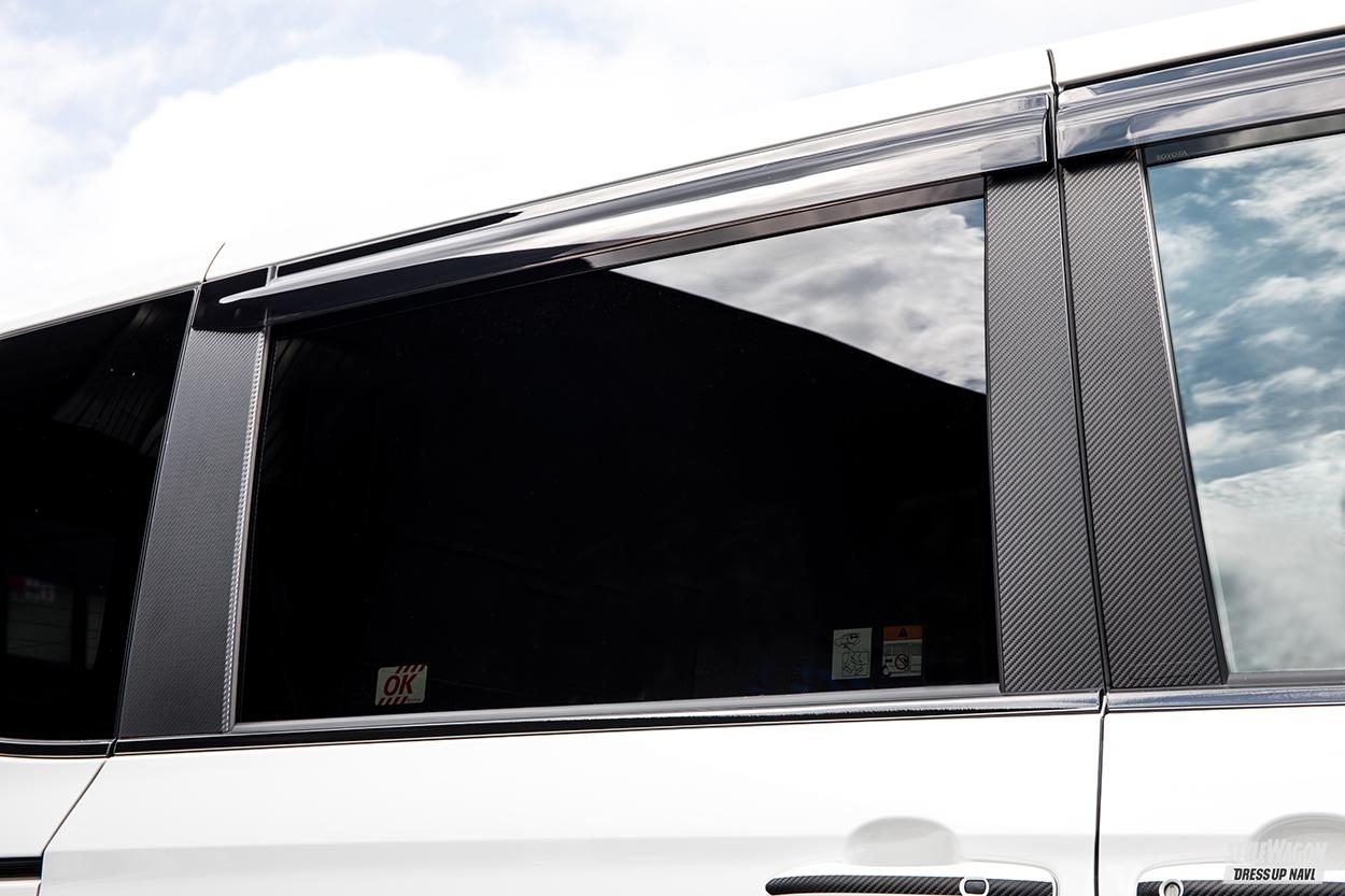 もちろん新型ノア&ヴォクシー用も続々と開発。各部に合わせてカットされているシートなので、手軽に自分で貼ることができる。撮影したヴォクシーは、設定されているシートをほぼフルで使ってコーディネイト。ホワイトボディにカーボンやブラック、レッドラインなどのシートで、エアロレスながらも存在感の高い1台に仕上げている。