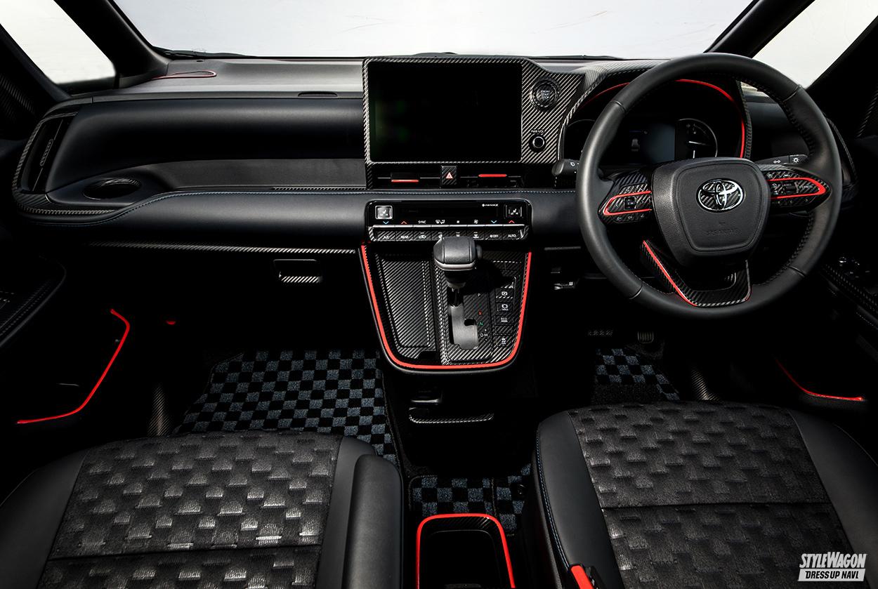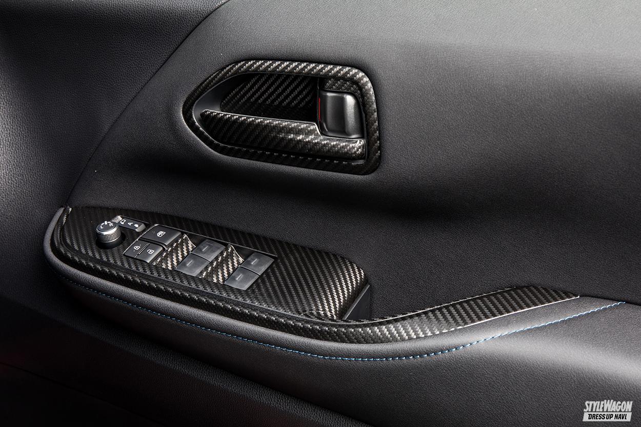アクアで大人気の車種別専用カッティングシート。カーボンはもちろん、グロスブラックカーボンや透明のプロテクションフィルムなどがラインアップしているので、自分好みのコーディネイトができる。また純正ボディや室内パネルなどのキズ防止としての効果もある。