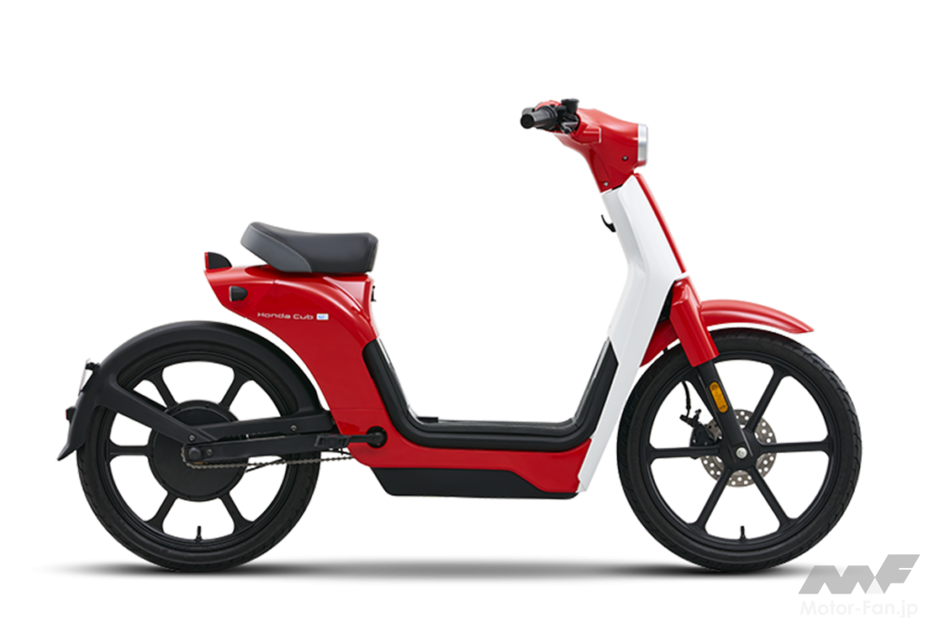 一方、スーパーカブ50(2022年式)は全長1,860mm×全幅695mm×全高1,040mmで、ホイールベース(軸距)は1,210mm、重量は96kg、前後ホイールは17インチ。電動になったホンダ・カブ・イーのボディサイズはスペックで推測する限り、ガソリン車のスーパーカブ50と同程度といえるが、重量は53.6kg。何と42.4kgも軽いのが特徴だ。