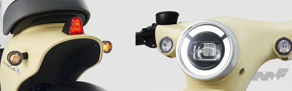 ヘッドライトはレンズ型のLEDを採用。長寿命なLEDは光度6000cd以上の明るさを誇り、夜間走行も安心。フロントウインカーはビルトインデザイン。リアのテールランプはコンパクトかつシンプルなデザイン。
