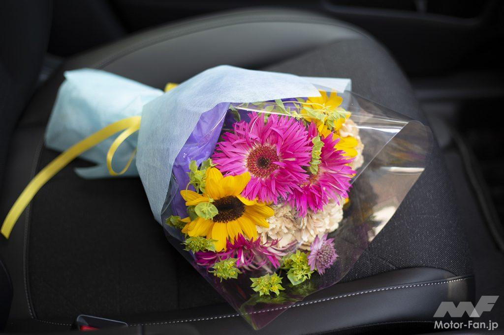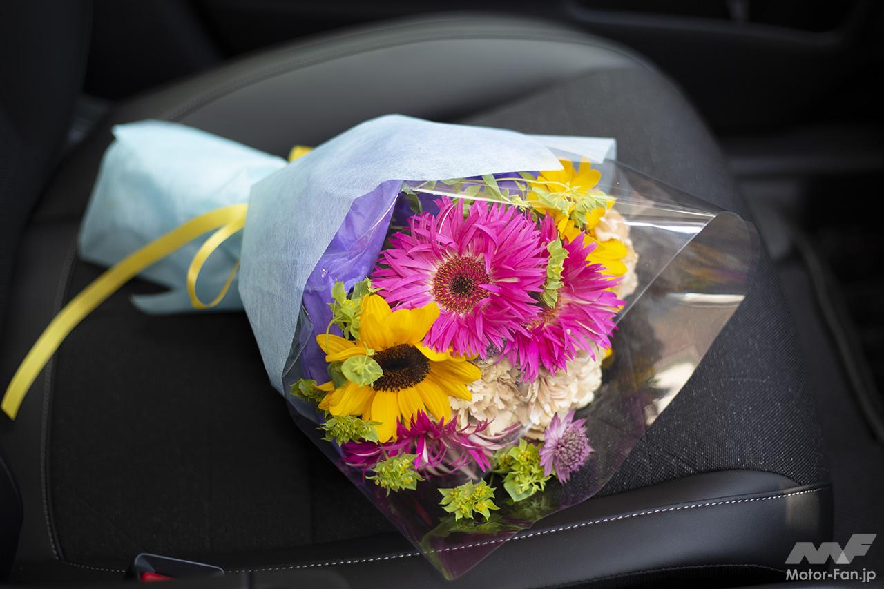 受け取りのために店内に入ると担当者から「ひとつお詫びが」と告げられる。ドライブレコーダーが欠品のため、未装着とのこと。いわゆる半導体不足が原因らしい。これは入荷次第取り付けてくれるとのことである。そのあとホンダコネクト関連のアプリのインストールと登録を済ませ説明を受けたあとキーを受け取り手続き完了。最後に、納車のお祝いに花束を頂き、簡単な納車式をしていただいた。ちょっと照れくさいが、その気持ちはありがたい。今後もお世話になります。