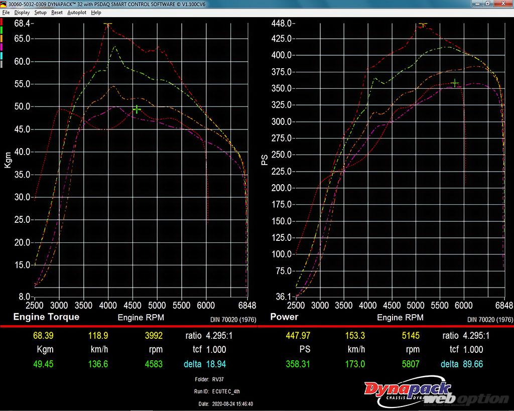 なお、テスト時はダイノパックのTCファクター(係数)を1.0で計測しているので、見かけ上の数値は他ショップの計測結果より低く見えるが、同じTCファクターに換算すれば遜色ない結果が出ていることは明白だ。ちなみに、0.85キロは燃費重視のエコモードとして用意されている。