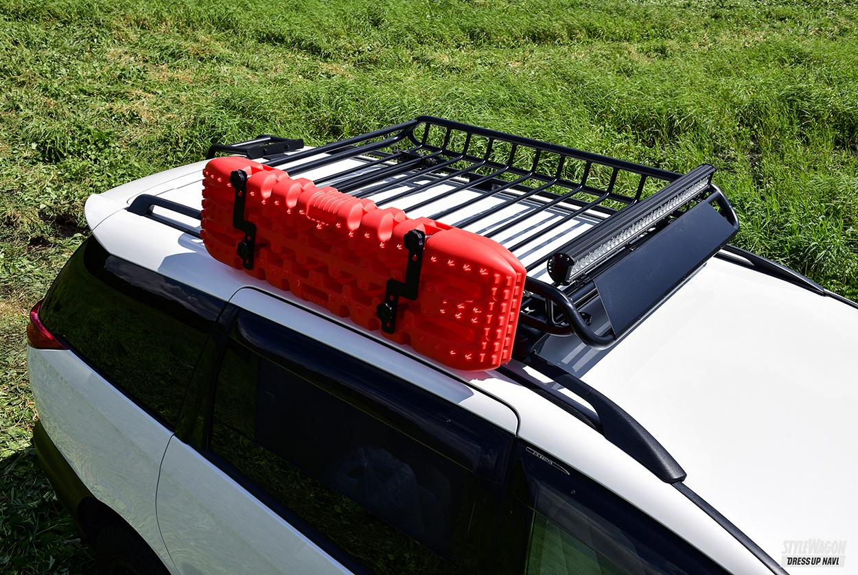 純正では設定のないルーフレールはワンオフもの。ルーフラックにはワークライト、リカバリーボードを取り付ける。