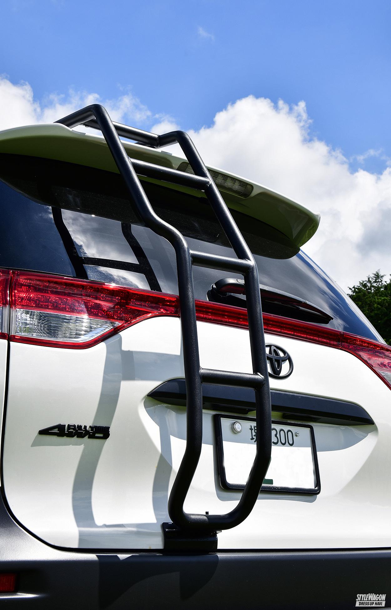 RAV4用のリアラダーを加工して取り付ける。ルーフラックへのアクセスを考えると必要不可欠なアイテム。