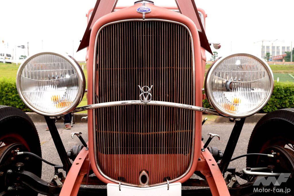 モデルBも爆発的なヒット作だったとは言い難いものの、V8エンジンという新たな価値観を創出して評価されることとなった。これら戦前のモデルはフォードに限らずアメリカ全土に普及していたから、古くなった中古車も豊富に存在した。スポーツカーがまだ発売されていなかったアメリカで、これら中古車たちは格好の改造ベースになっていく。新車を買えない若年層が重いパーツを取り去りエンジンをチューニングしたりV8に載せ換えて、スポーツカーのように速さを競って楽しむのだ。これが第二次世界大戦後にカリフォルニアを中心として盛り上がりを見せたホットロッド文化へとつながっていく。例えば映画『アメリカン・グラフィティ』には進路が決まり地元を離れることになる若者たちが、1932年型フォード・モデルB「デュース」で走り回る姿が描かれている。「デュース」は軽量化を施したことでV8エンジンの速さを際立たせたホットロッドの代表的な存在。映画を見て憧れたという人も多いことだろう。6月18日に取材した「クラシックカーヒストリックカーミーティングTTCM」の会場で、一際目を引くホットロッドが展示されていた。近くで会話をしている人たちの話を聞くでもなく聞いていると、やはり「アメリカン・グラフィティに出ていた〜」と盛り上がっている。会話の主であるモデルBオーナーにお話を聞いてみることにした。