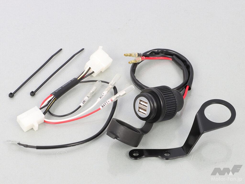 バイクのメーター周りに「モバイルホルダー」を取り付けてスマートフォンを固定し、スマホをナビとして利用する手法は、今や定番中の定番。その場合に問題となるのが、スマホの充電。