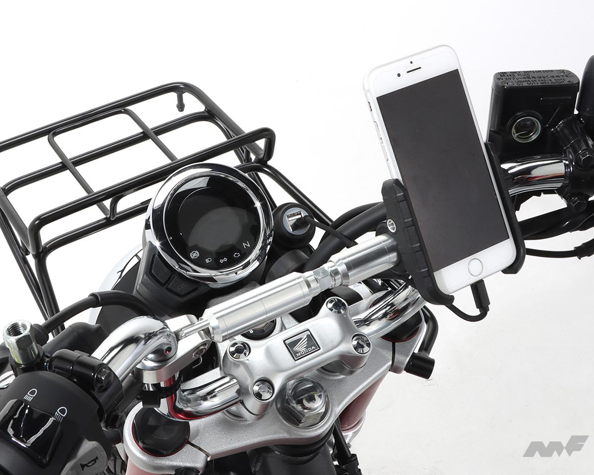 USB電源KITにキタコ製ハンドルブレース(下記参照)や市販のスマホホルダーを組み合わせれば、モンキー125も簡単に“旅仕様”や、“デリバリー仕様”へと変身。キャンプや屋外レジャーでは、USBを使用した電化製品の使用にも重宝するはず!