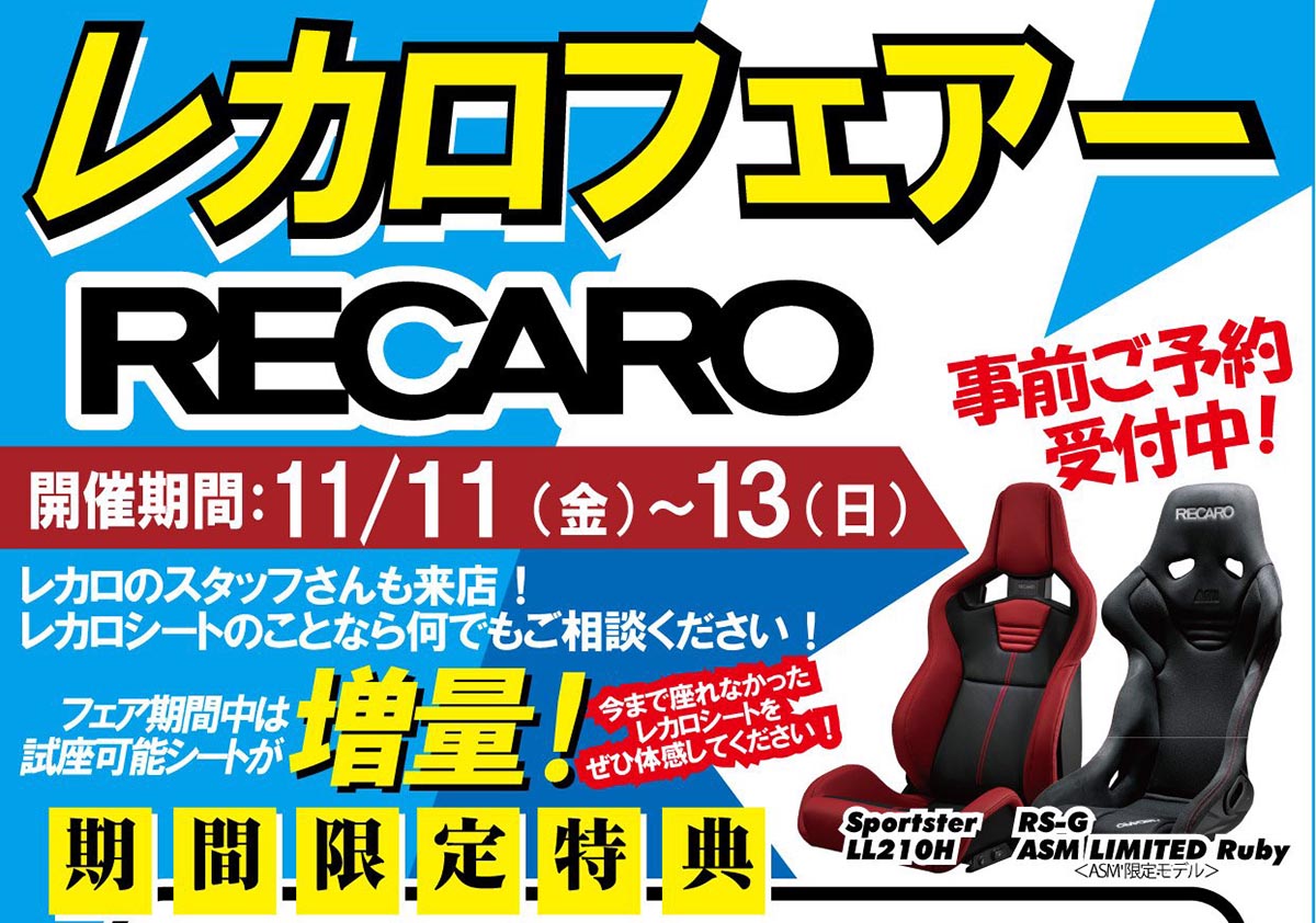 2022年11月11日(金)~13日(日)、スーパーオートバックスサンシャイン神戸で開催されるのが、レカロシートをお得に導入できるスペシャルイベント「レカロフェア」だ。