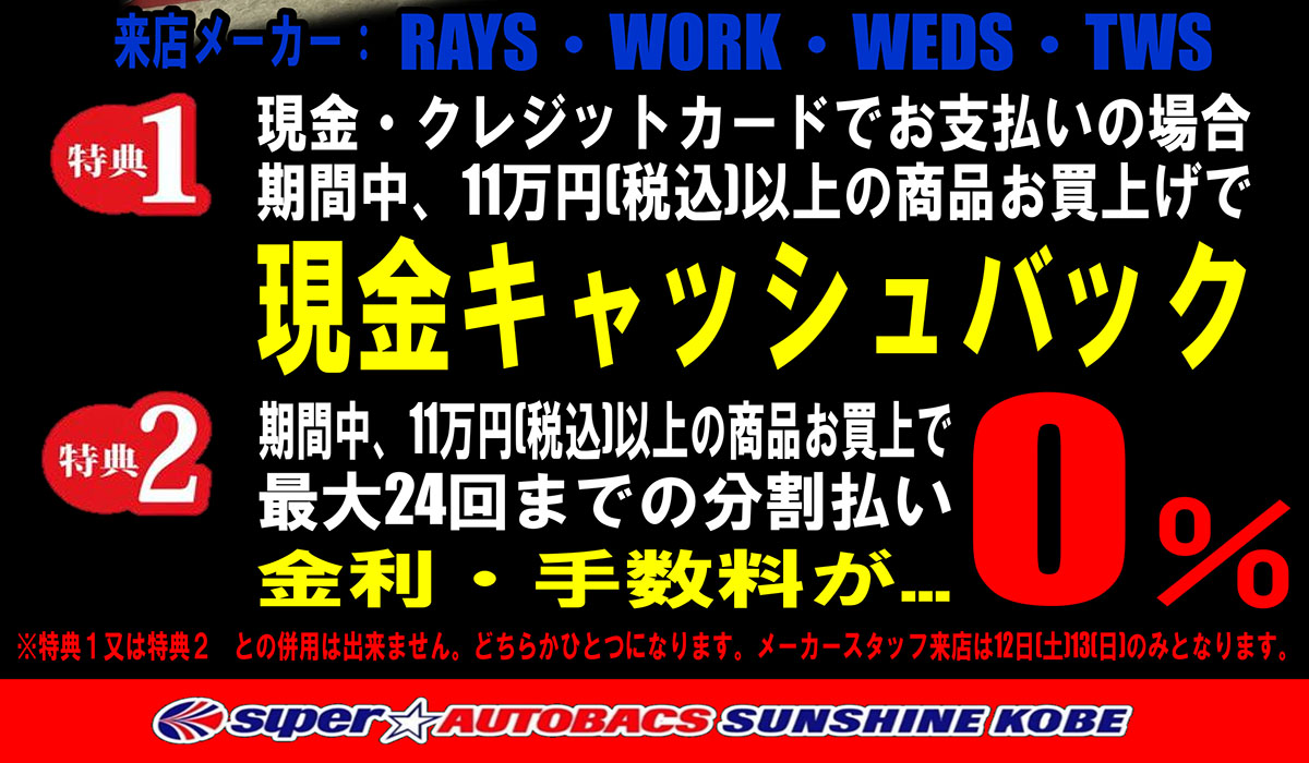 また、併用こそできないが、同時開催されているSA神戸オープン22周年セールの特典であるローンプログラム(税込み11万円以上購入で最長24回まで金利・手数料0%)も適用対象。購入時に特典を選べるようになっている。