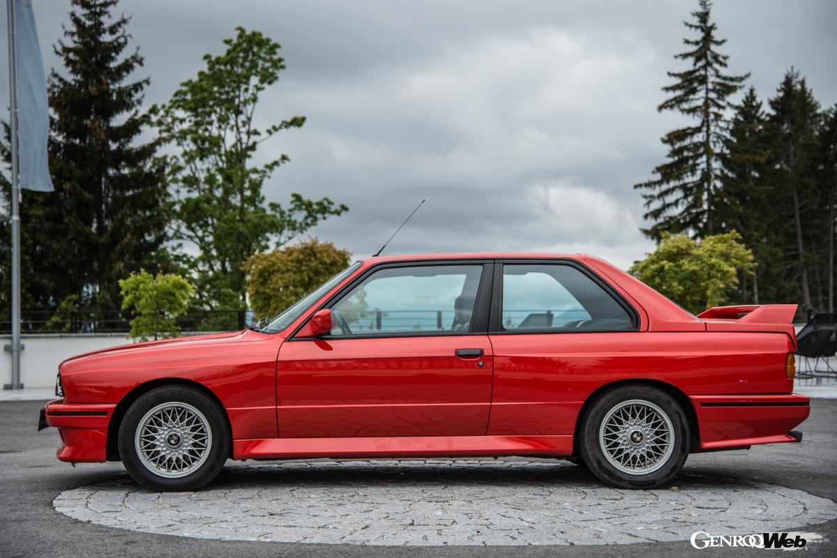 その状況をバイエルンの雄が黙って見ているわけがなかった。BMWはモータースポーツ部門のBMW M GmbHと共に、1982年登場のE30型3シリーズをベースに開発を開始。ライバルに比べ小型の車体やジオメトリー変化が大きいリヤのセミトレーリングアーム・サスペンションなどを補うために前後トレッドを大幅に拡大。