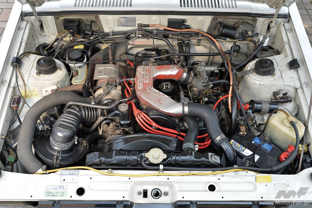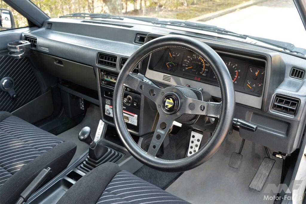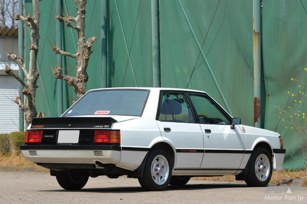 1973年発売の初代ランサーがフルチェンジして1979年にランサーEXへ進化。海外モデルに2リッターターボが追加された1981年、国内向けは1.8ターボが追加された。1983年のマイナーチェンジでグリルが変わりターボにインタークーラーが装備された。ちなみに車名はターボインタークーラだ。