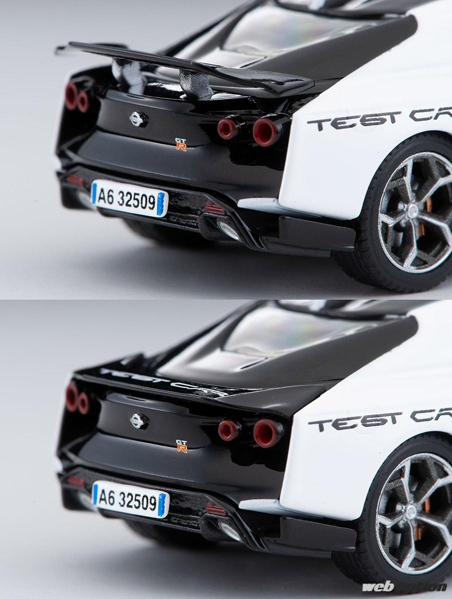 今回製品化されたのは、テストカー仕様の2モデル。イタルデザインらしい彫刻的なエクステリアは細部まで忠実に再現されており、実車の油圧式リヤウイングもしっかりと可動機構が設けられている。