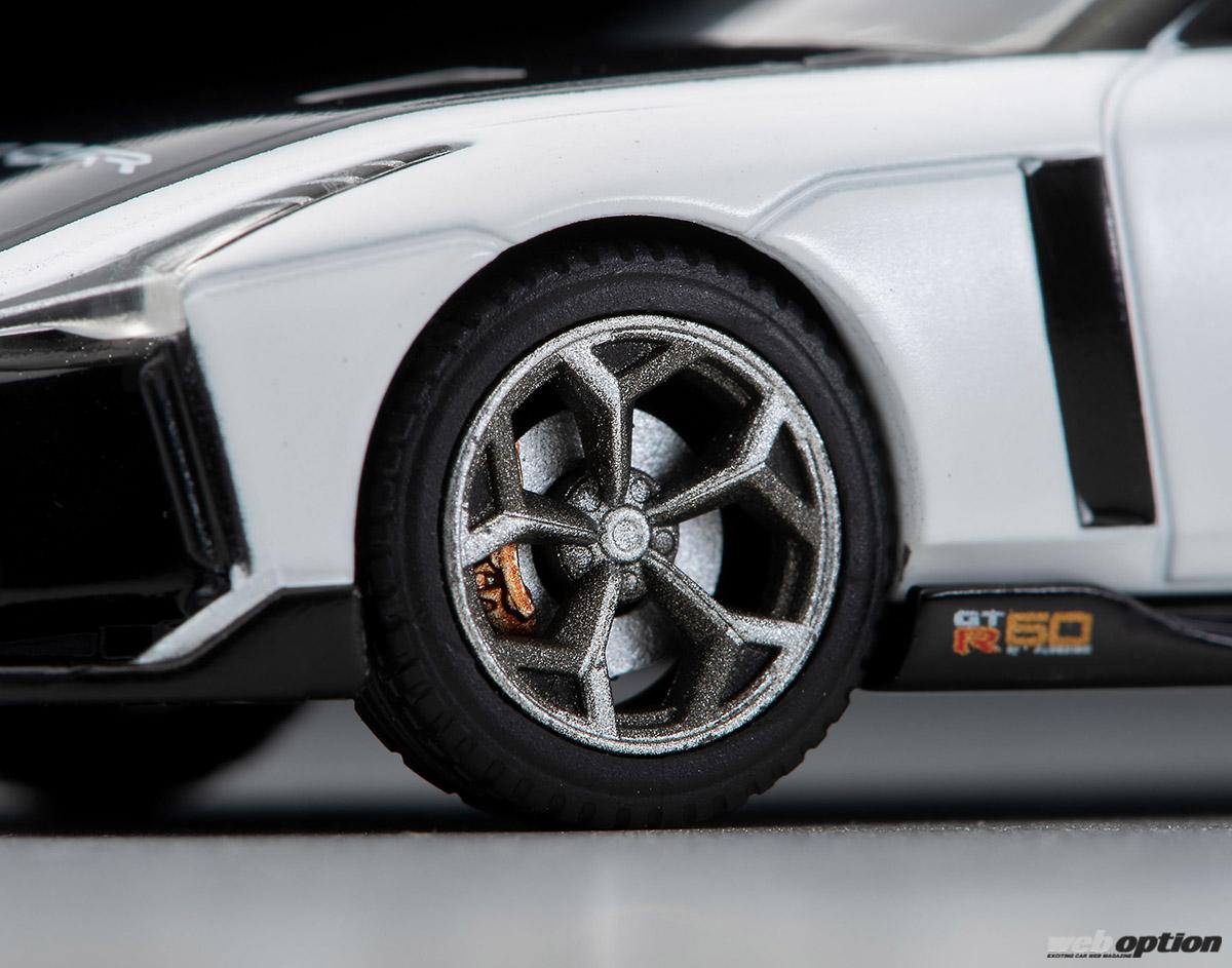 バケットシートやホイールもご覧の通り、完璧な仕上がり。1/64スケールながら、その精巧さは一般的なミニカーとは比較にならないほどハイレベルなものだ。
