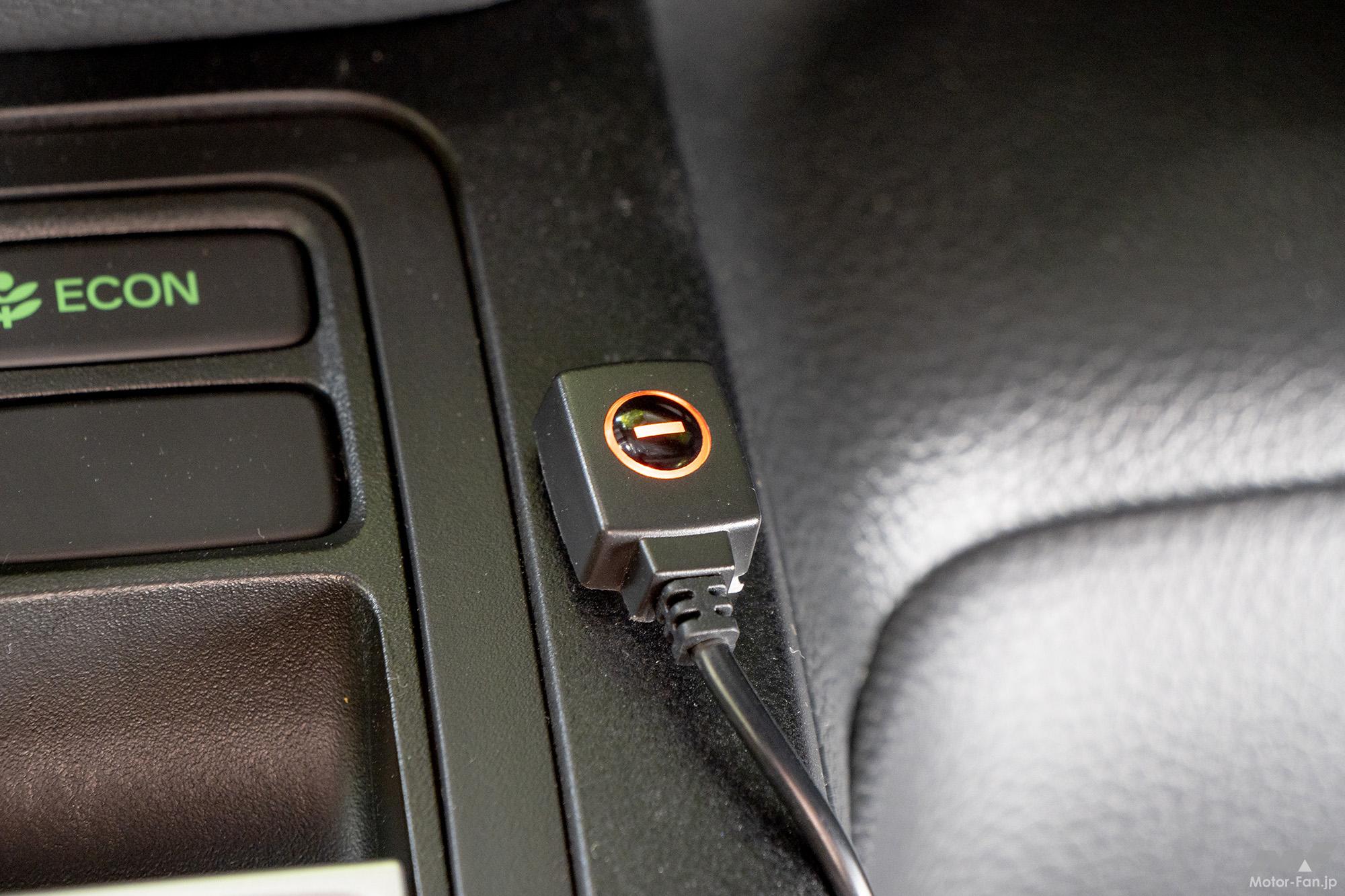 本体は手のひらに納まる小型サイズで、純正システムとの接続はカプラー付きのハーネスを割り込ませるだけと簡単。車両側への加工作業が不要なためクルマを乗り替える際にノーマルへ戻すことも可能だ。本体はインパネ内に取り付け、付属スイッチは手が届きやすい好みの場所にテープで貼り付ける。デモカーではセンターコンソール右脇の手を伸ばすと自然に届く位置としている。小型で親指の先ほどの大きさで目立たず、動作確認用のインジケーターが内蔵されている。