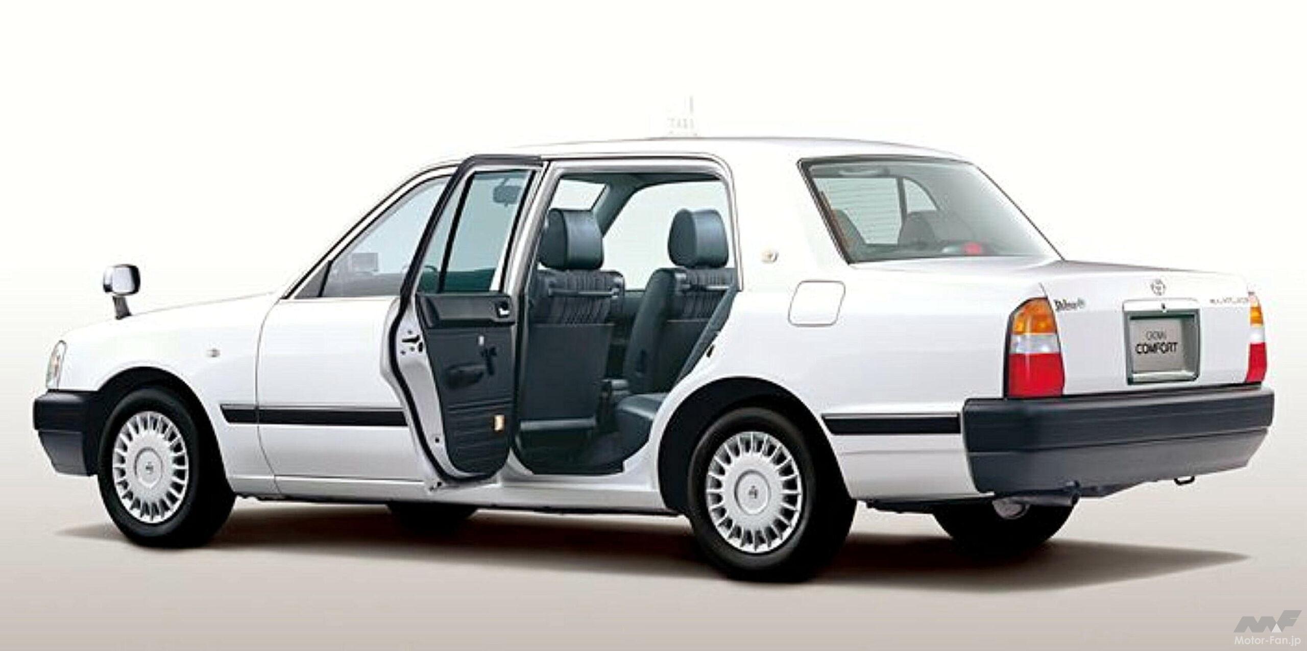 クラウンコンフォートもコンフォートも「次世代をリードするタクシー」をテーマに掲げ、乗客と乗務員の快適性を徹底追求するとともに、省エネルギー、省資源という社会要請に応えることを目指して開発されました。外形デザインは格調と高級感、高い機能性を備えたものとされ、居住性や乗降性などに優れた、乗客に快適な室内空間を作り出すべく、リヤピラーは立ち気味に設計されています。これにより車両サイズをいわゆる“5ナンバーサイズ(小型乗用車規格)”に抑えながら、高いルーフとし、タクシー用途に適したビッグキャビン、広いトランクスペースを確保しています。