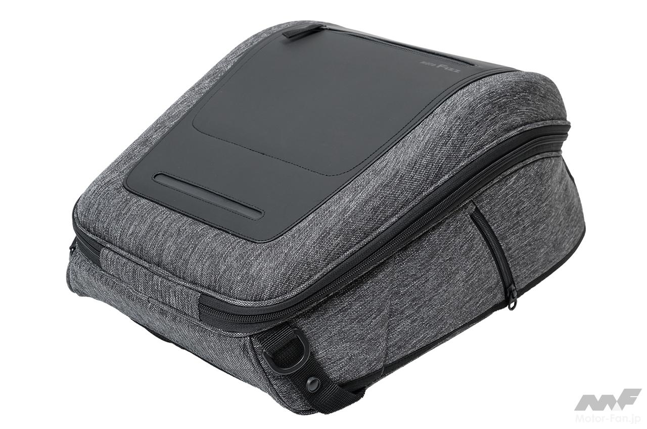ザック(リュック)orシートバッグとして使える「ライディングザック18」は、骨格部に頑丈なEVA素材の立体成形パネル(EVAセミハードパネル)を採用。