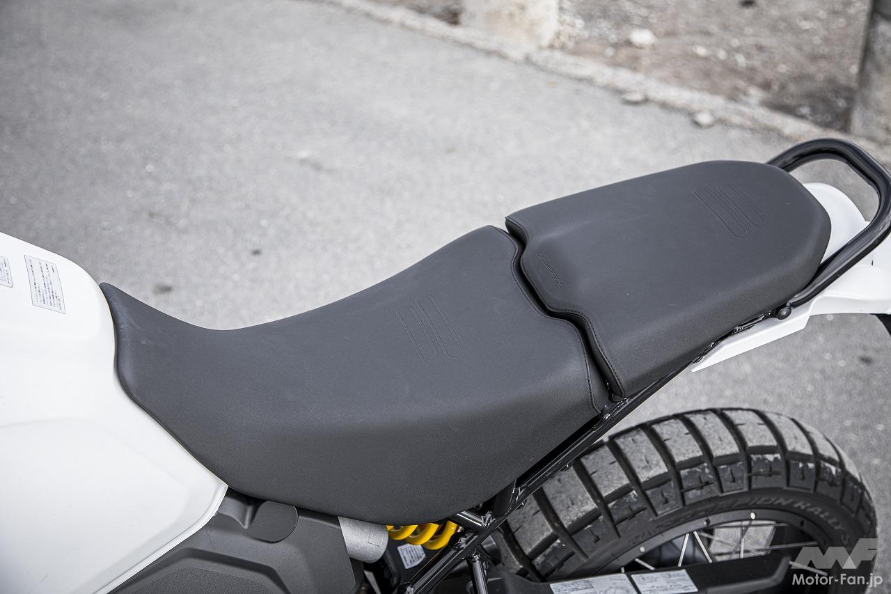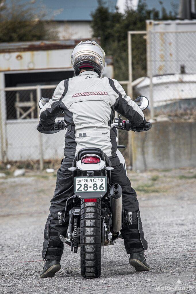前後サスペンションの動きが秀逸なことも、素直で安定性のあるハンドリング特性に結び付いていると感じます。低速であまり負荷がかかっていない状態でもソフトに作動してくれるし、それによって挙動変化が大きくなることもありません。つまり乗り心地が良いままタイヤはしっかりと路面をとらえている印象なのです。ペースを上げるとそれに合わせて減衰力が高まり、やはり路面をガッチリととらえてくれます。タイヤ自体はオフ志向のブロックパターンですが、オンロードでも不安はまったくありませんでした。