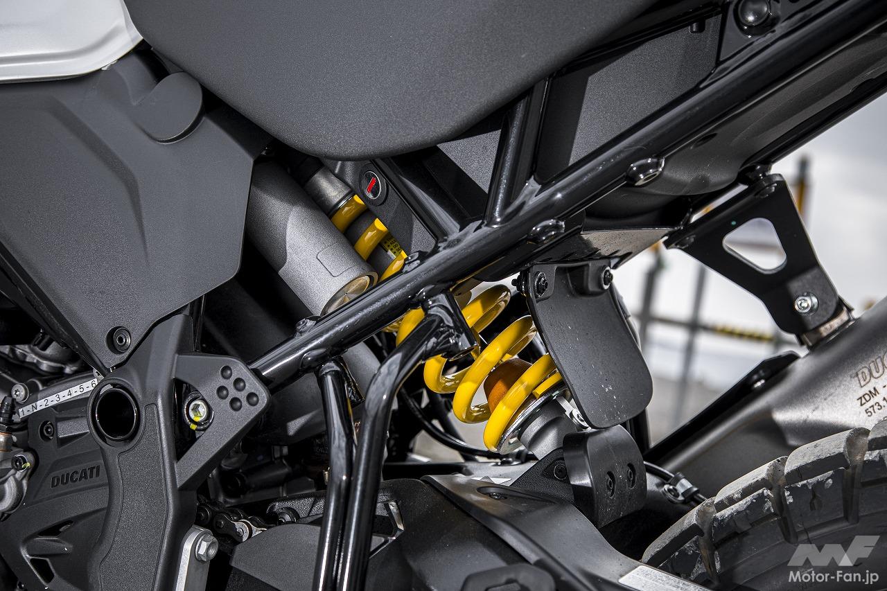 ムルティストラーダとライバル関係になってしまうのでは?と危惧しましたが、デザートXはよりオフロード性を重視したものとしていて、エンジンはモンスターと同型の937㏄水冷V型テスタストレッタ11°を搭載しています。ムルティストラーダV2とも共通していますが、タイヤサイズがフロント21インチ、リア18インチとしていることからも、明らかにオフ志向を強めた設計であることが理解できます。なのでライバルとなるのはムルティストラーダではなく、国産モデルなら、ホンダCRF1100Lアフリカツイン、スズキVストローム1050DE、そして外国車ならBMW・F850GSアドベンチャー、トライアンフ・タイガー900ラリーあたりになるのではないでしょうか。そこで、これらライバルモデルに対してデザートXにはどんなアドバンテージがあるのか見てみました。
