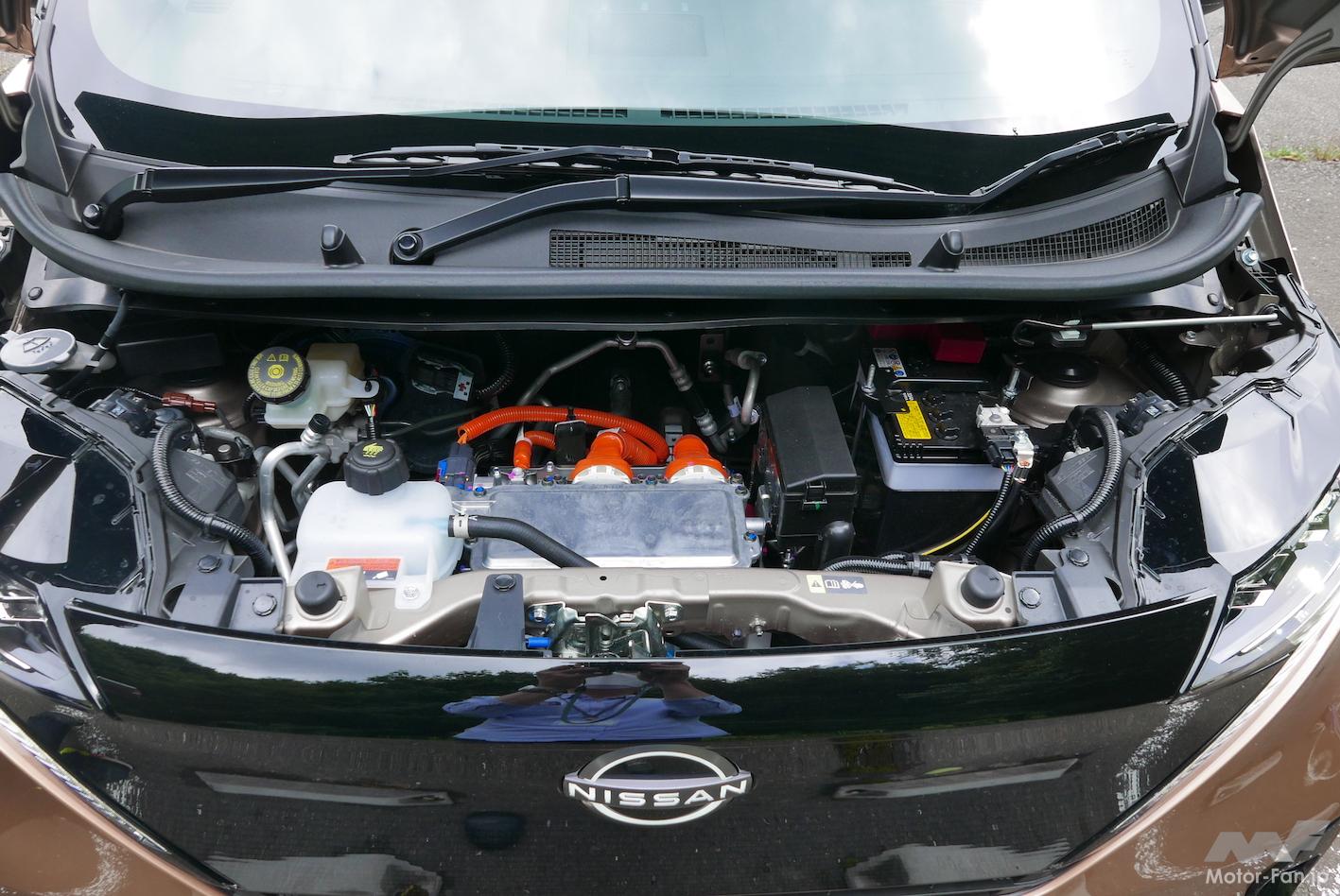 全長×全幅×全高:3395mm×1475mm×1655mm ホイールベース:2115mm 車重:1090kg サスペンション:Fマクファーソン式/Rトルクアーム式 3リンク 駆動方式:FWD 駆動モーター MM48型交流同期モーター 定格出力:20kW 最高出力:47kW(64ps)/2302-10455rpm 最大トルク:195Nm/0-2302rpm バッテリー容量:20kWh 総電圧:350V WLTCモード:124Wh/km 市街地モード 100Wh/km 郊外モード 113Wh/km 高速道路モード 142Wh/km 一充電走行距離:180km 車両本体価格:294万300円 試乗車はop付き プロパイロットパーキング/プレミアムインテリアパッケージ/充電ケーブル