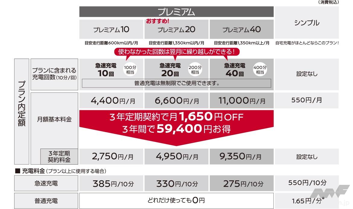 プレミアム10 4400円/月(3年契約で2750円/月)で急速充電10回分(100分相当)