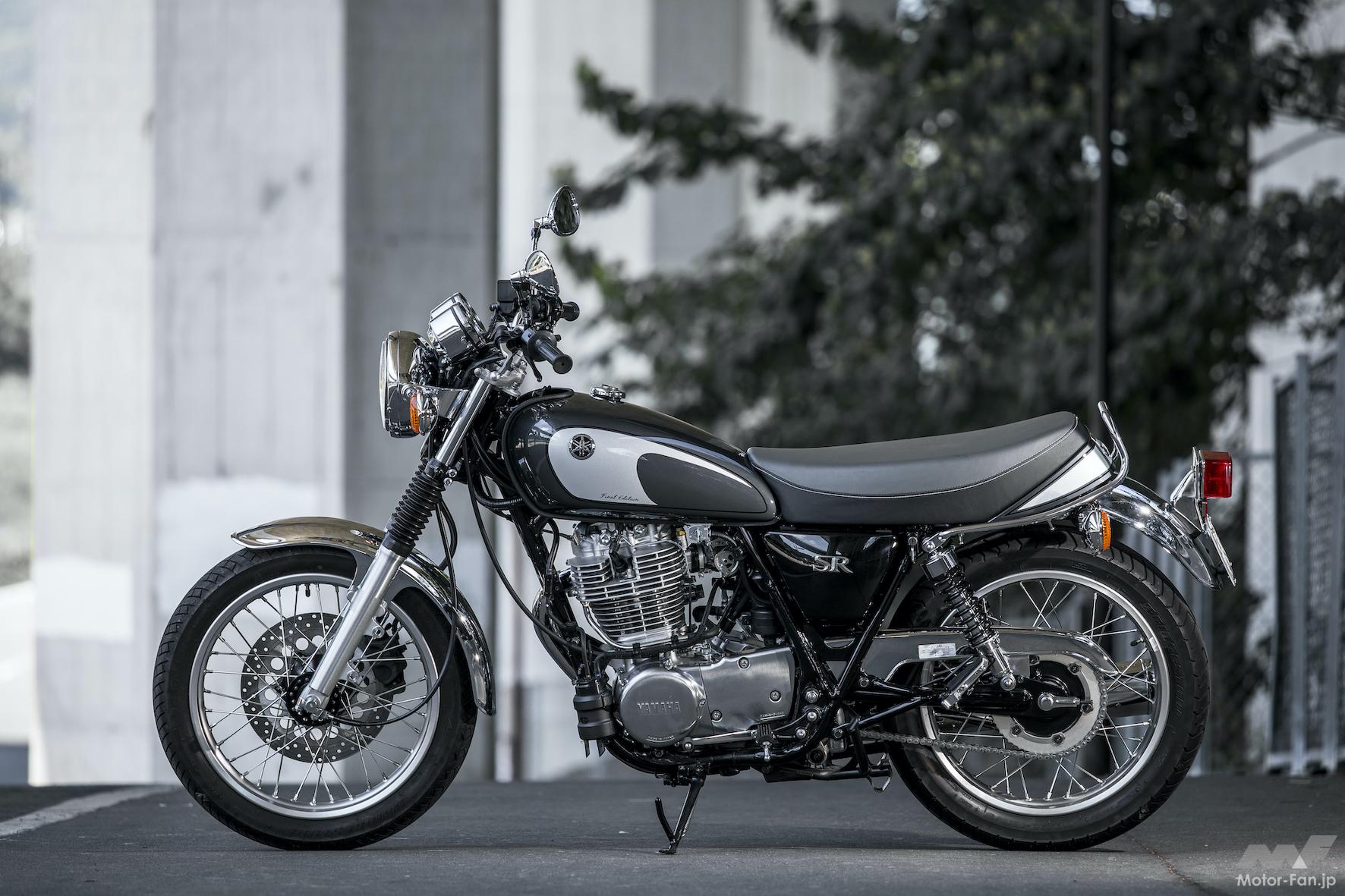 シンプルでクラシカルなスタイリング、スッキリと屹立する単気筒エンジンの造形が魅力のSRにとって、後付けの排ガス対策装備が加わるのは、魅力になりづらい。価格上昇の見通しと前述の商品性低下も含め、これでお終いとの判断は、致し方ないかと個人的には思う。