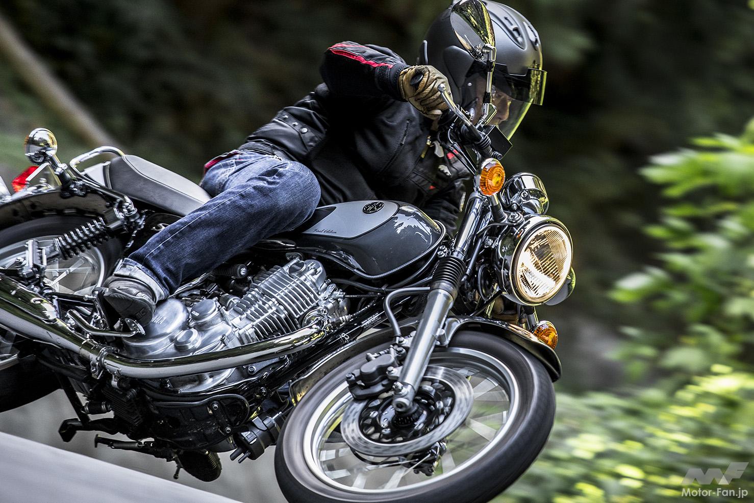 加えて今後のABS装着義務化だ。SRはこれをせずに退場することになる。ABSは安全な制動に寄与する装備とは思うものの、これは義務づけすべきものなのか? スリッパークラッチ(急激なシフトダウン時の後輪ロックを防ぐねらい)も普及が進んだが、ABSと同様、機械側が車輪をロックさせずに安全に走らせる装置だ。だが、従来は車輪をロックさせないように、乗り手側が腕を磨いた。こうした装備は、本来ユーザーの技量で要不要を判断してもいいのではないか(要はオプション扱いでいい)……と言ったところでオジさんの戯言にしかならず、この方向性が変わることはなかろう。かくなる上は、キック始動で空冷単気筒という、バイクのシンプルで機械的な操作と走行性が残された最後のSR400を、歓迎しつつ味わってみたいと思う。