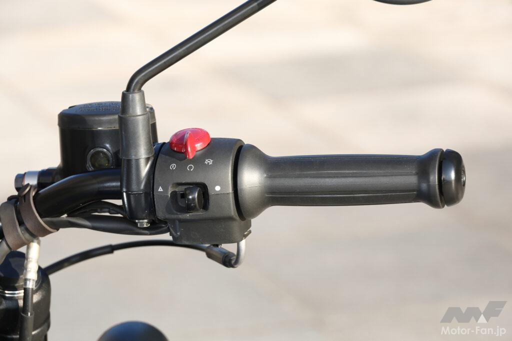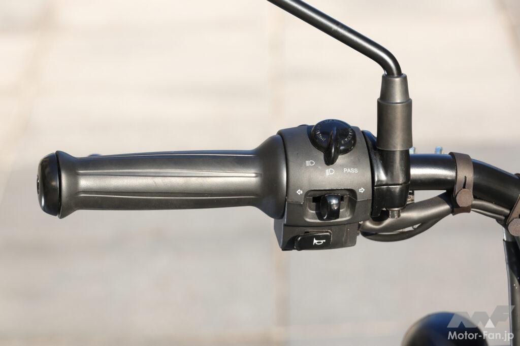 ブラックのパイプバーハンドルを採用。至ってオーソドックスな雰囲気を漂わせている。写真では見えないが、バーの下部左側にはスマホ充電等に使えるUSB電源ポート(5V-2A)が標準装備されている。