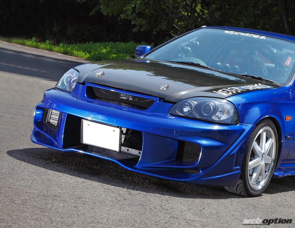 アメリカ生産の輸入車であるというプロフィールとそのスタイリングから、スポコンブームの象徴とも言えるEJ7型シビッククーペ。映画の影響などもあってチューニングベースとしての人気も高いモデルだが、オーナーが望んだのは単なるドレスアップ仕様ではなく、走りも存分に楽しめるリアルチューンドだ。