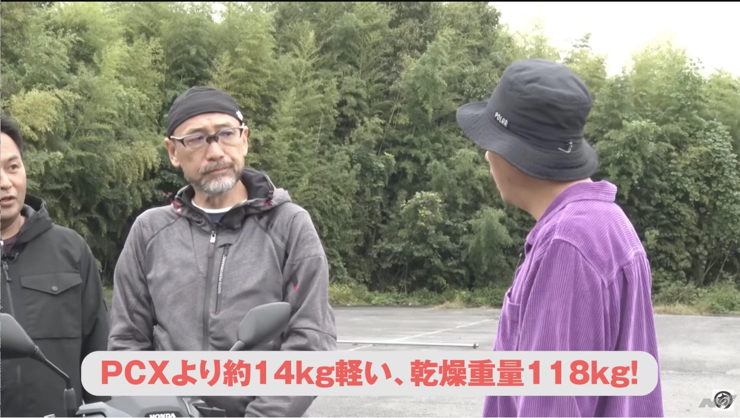 今回の動画は久しぶりの登場となるジャーナリストのケニー佐川が試乗ライダーを担当している。編集部のチャボとサンタサンが司会進行役を務め、いつものモトチャンプTVが帰ってきたような構成になっている。今回の動画は「HONDAクリック160i PCXに迫る実力派がタイから登場!」という回で、まずどのようなモデルであるのか概要から説明している。PCXと同じエンジンを採用しながら車両重量が118kgしかなく、PCXより約14kgも軽い。これは大きな武器になるはずだ。