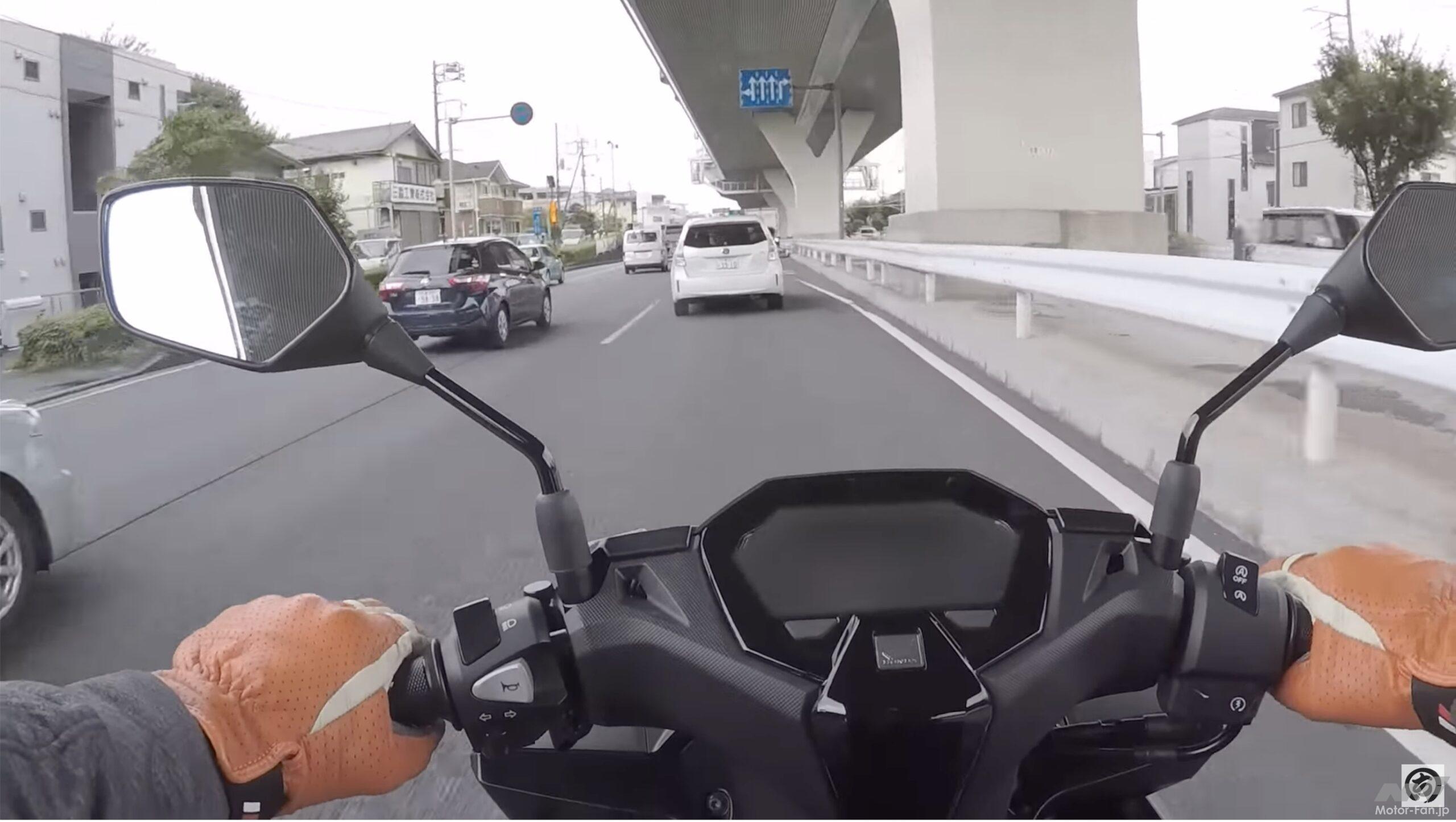 一般道・高速道路だけでなくサーキットでの全開走行も行っている。フラットフロアを実現するためアンダーボーンフレームを採用する車体構成だから、センタートンネルのあるPCXなどと比べて剛性面では不利。ところがエンジン出力に対して十分なフレーム剛性を確保していて、アクセル全開からフルブレーキング、さらにはコーナリングでの安定性まで文句なし。125ccの車格に160ccのパワーなのだから、当然ながら速さは文句なし。PCXと同じエンジンなのでスムーズなマナーを備えているが、軽量ボディのためスポーティさが際立ったいる。