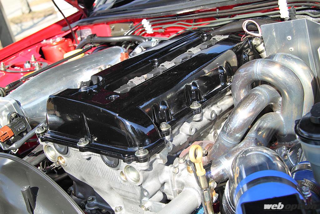 目指したのは、NAのような自然な吹け上がり。そのため、SR20DETエンジンはHKS2.2Lキットで排気量を拡大した上で、可変カム機構NEO VVLを備える通称“VEヘッド”を流用している。