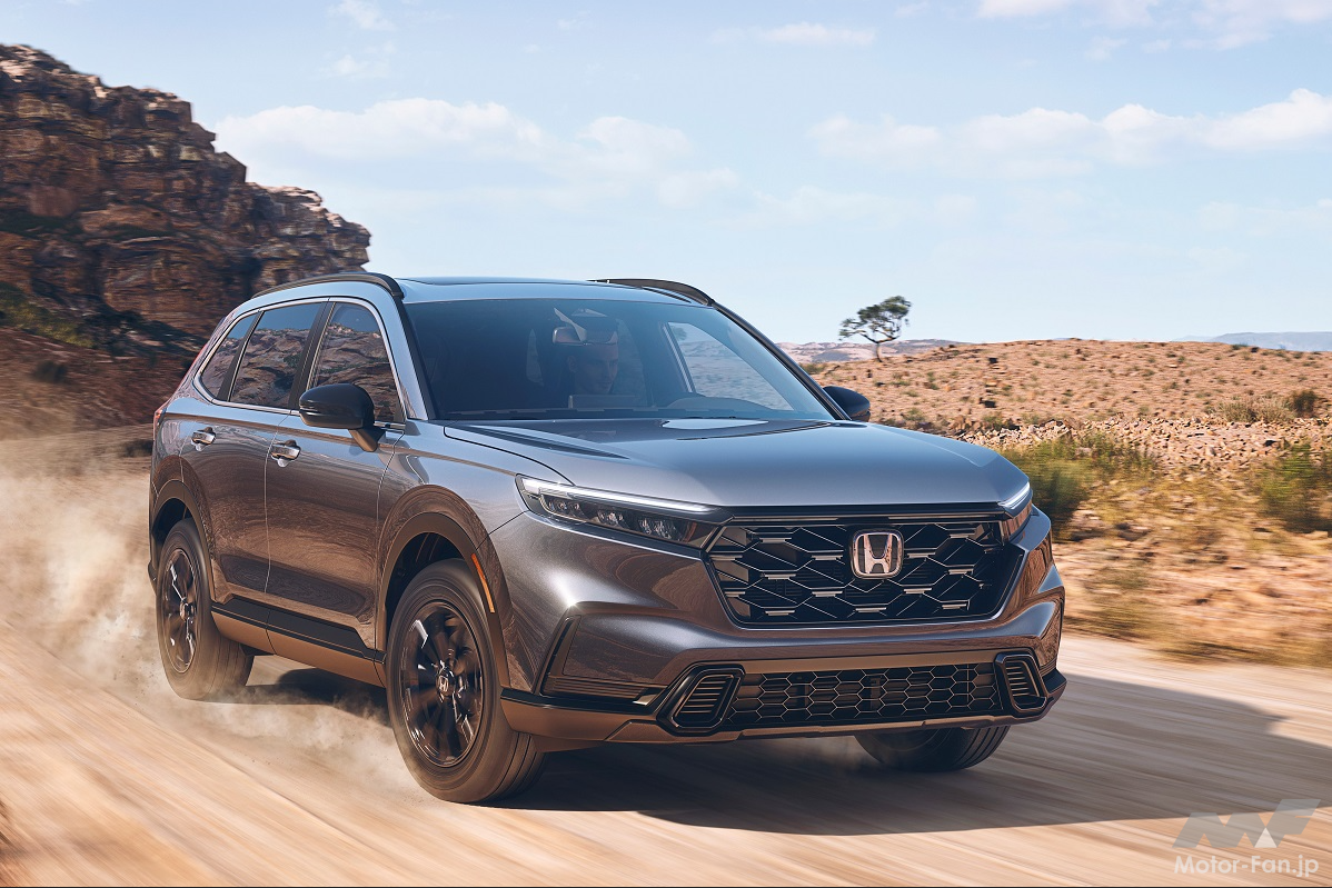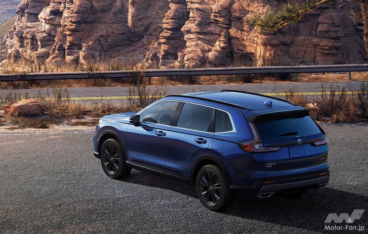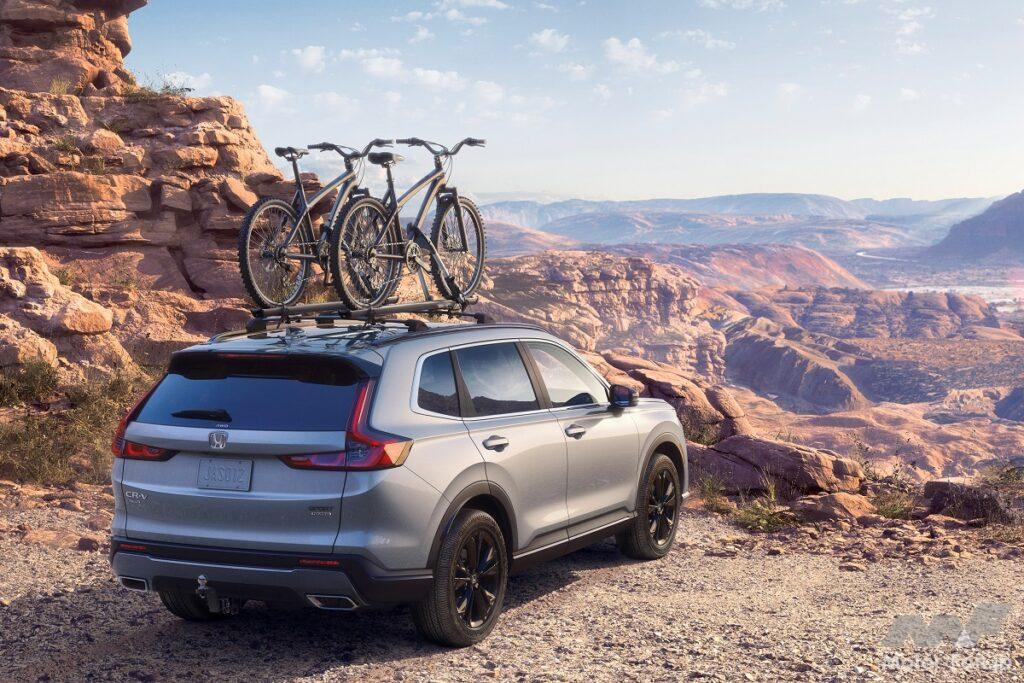 2023年モデルのCR-Vは、最近モデルチェンジしたホンダ・リッジラインやホンダ・パスポートのスタイリングにインスピレーションを受け、より無骨で男らしいスタイリングに仕上げられた。全長が68mm延長され、水平基調の力強いボディラインが特徴的だ。