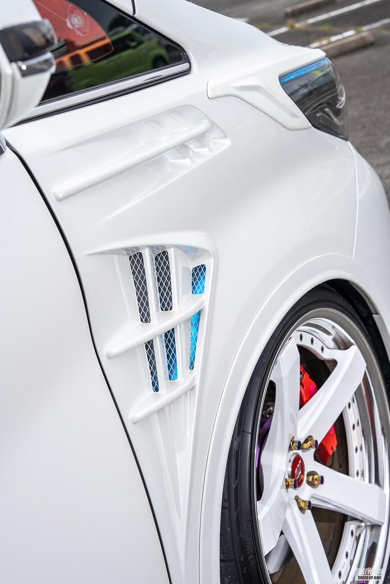 SPECIFICATIONS■ホイール/ワーク・ジーストST2(21×10.0F+38 R+25) ■タイヤ/(245/35)■エクステリア/F・S・ウイング=クール、R=ロェン+クール、フェンダー=ロェン、テール=ヴァレンティ、3Dペイント ■チューニング/車高調=ブリッツ、ブレーキ=バックグラウンド ■オーディオ/ウーファー・アンプ・スピーカー=アルパイン ほか