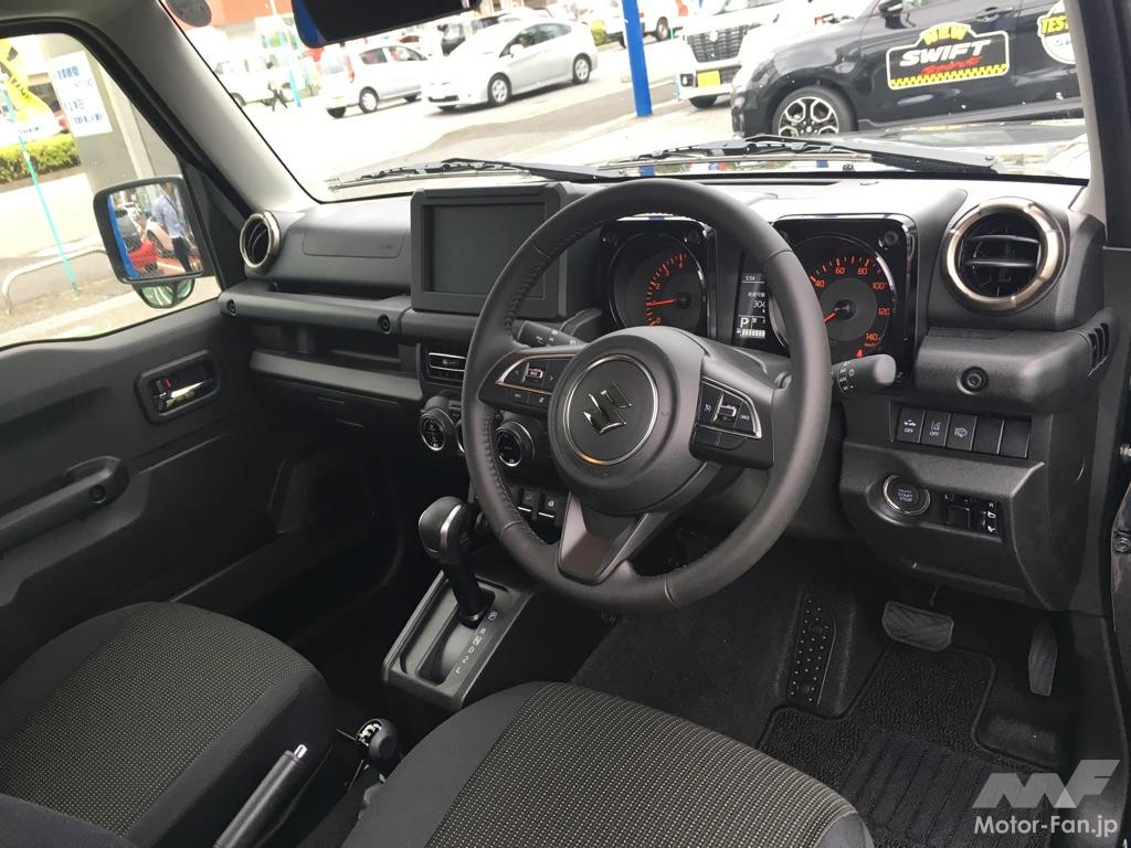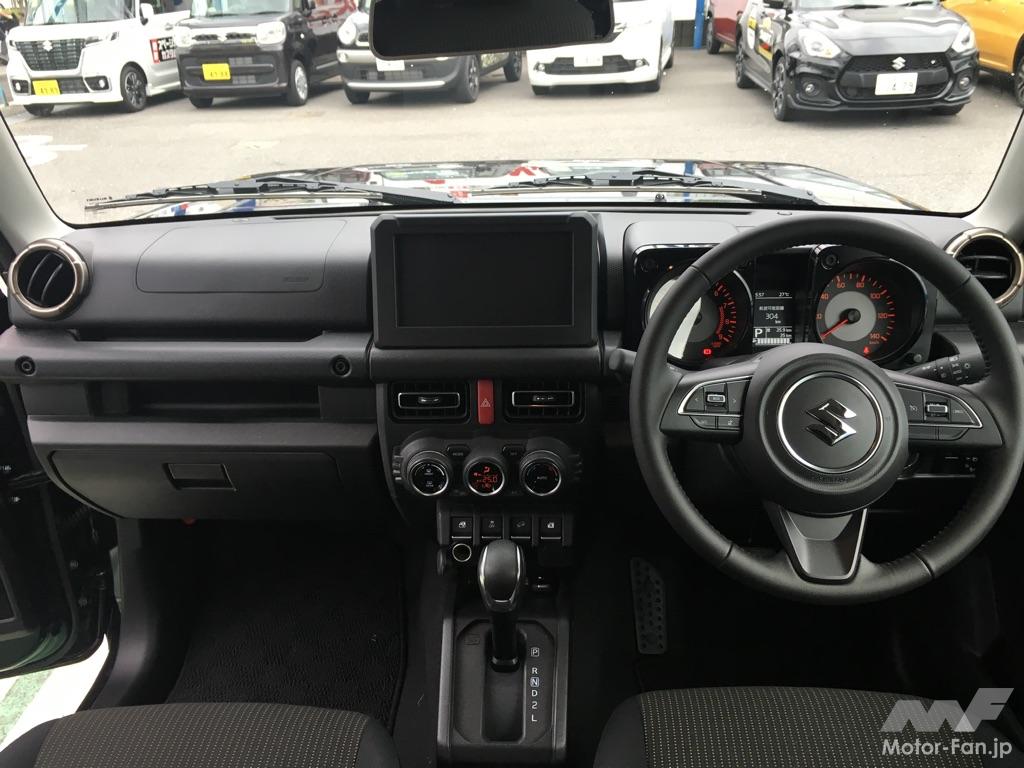 直立したフロントウインドウは上下の幅が狭く、ワイパーがむき出しで見えている。水平基調でデザインされたインパネは奥行きが短くコンパクトで、どこか昭和の日本車のような懐かしさがある。「そうそう、この感じ!これくらいがいいよね。」と思わずそんな言葉が出てくる「ちょうどいい、心地よい空間」が新型ジムニーの魅力の一つだ。