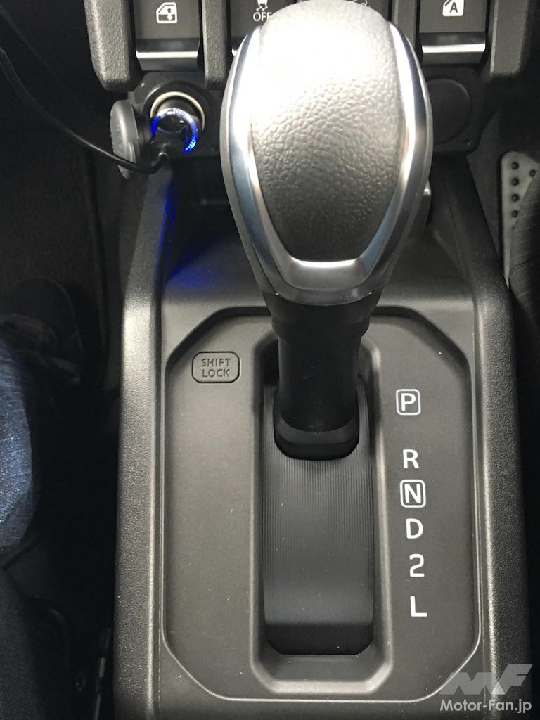 ジムニー XC 4ATは4速のトルコン式オートマチックだが、セッティングとギヤ比が絶妙だ。エンジン特性ともぴったり合っていて、軽快で楽しい。自分で思った瞬間にギヤが変えられる5MT車に魅力を感じ、契約したが、正直4ATでも良かったかなと思うほどバランスよく、楽しい走りに仕上がっている。