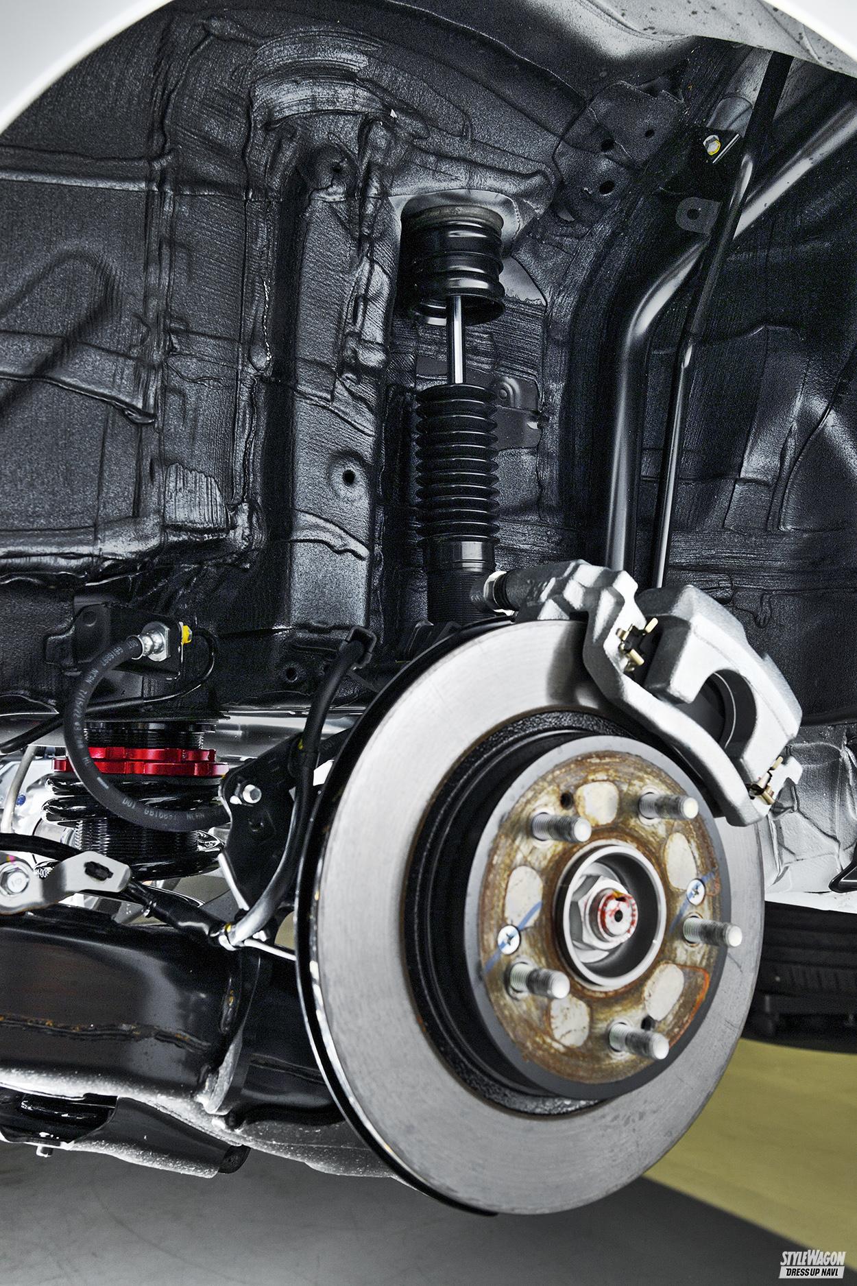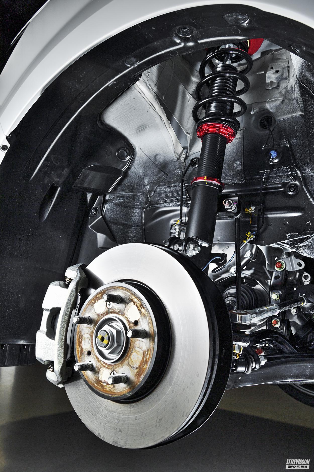 また、室内から調整できるステッピングモーターとコントローラーを追加したダンパーZZ-RスペックDSCプラスなら、最大96段階の減衰力調整が可能なので、より細かいセッティングを車内から手軽に行えるのが美点。乗車人数や走行状況に応じて、最適な減衰力で安定した走りを全自動でコントロールできるフルオートモードも搭載される。撮影車両のように大径ホイールを装着した場合でも、快適性を損なうことなく理想のスタイリングと走りを叶えてくれる車高調だ。