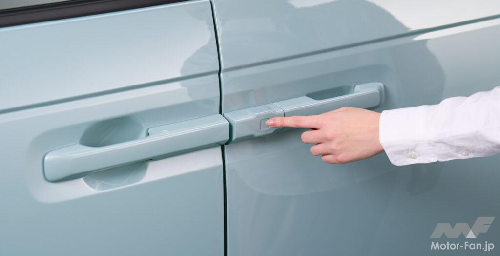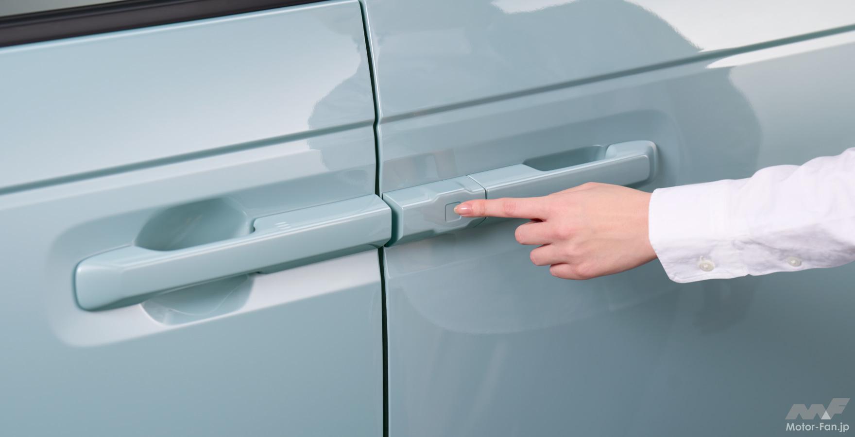 この静電タッチセンサー式は、指先で軽く触れただけでドアの開閉が可能。もちろん、予期せず開閉しないように誤作動を防ぐ禁止電極エリアが上下に配置されているので安心だ。静電式の場合、センサーの感度(操作)は、個人によって好みがありそうだ。従来どおりドアハンドルを握っても開閉することができる。