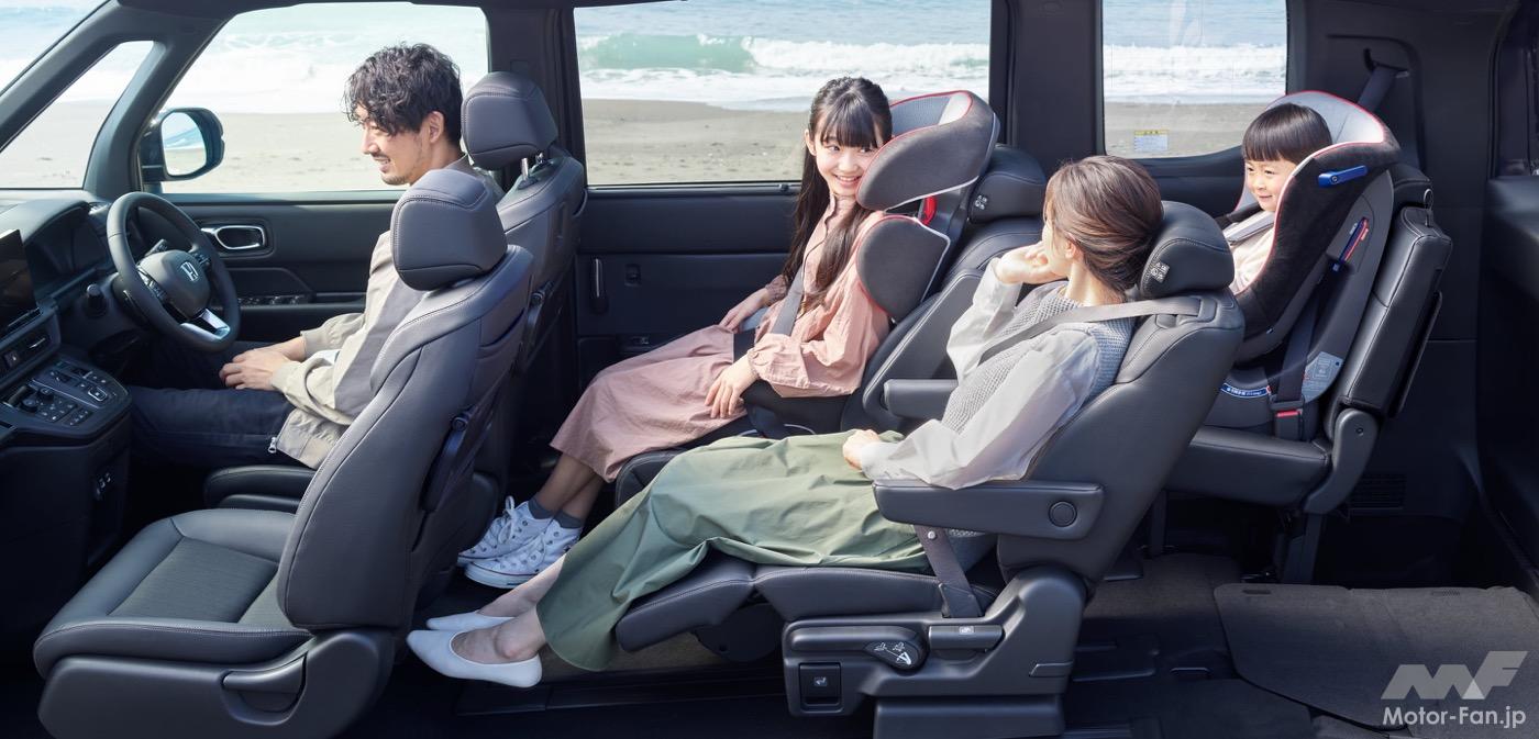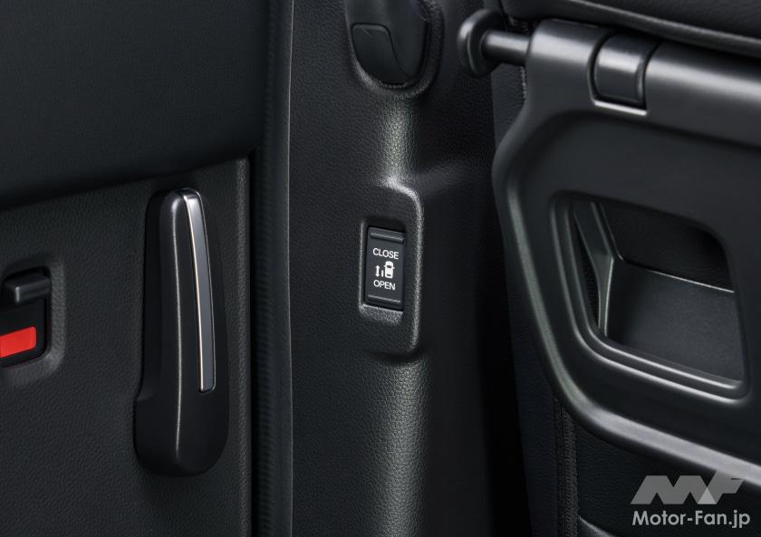 ステップワゴンの2列目に座って意外に便利に感じたのが、センターピラー内側に設けられたスライドドアの開閉スイッチ。こうしたスイッチは、インパネ右下(運転席側)に集中配置されていて、今までのミニバンにありそうでなかった装備だ。2列目のシート位置を問わず、ワンタッチでラクな姿勢でドア開閉操作ができるのはうれしい。また、純正アクセサリーでは、「ハンズフリースライドドア」「ロングアシストグリップ」を設定している。