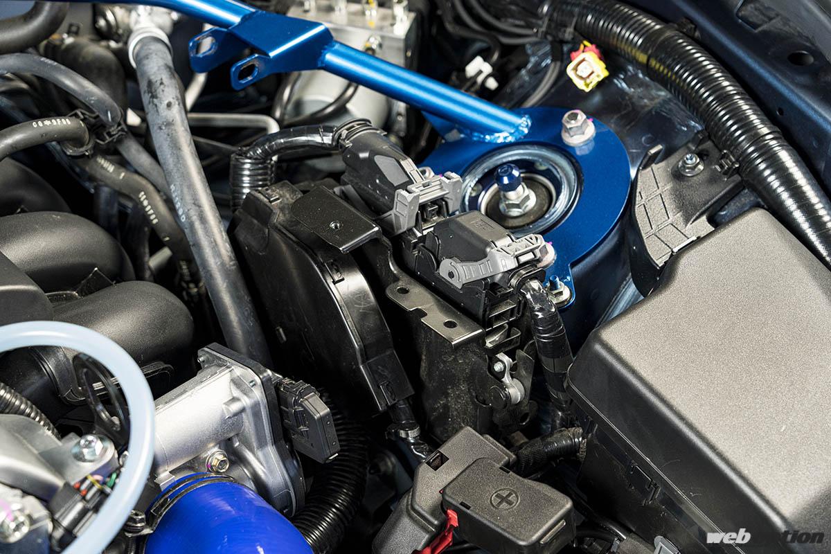 エンジンスワップ時にエンジンハーネスやECUユニットの変更は不要で、ECUをPE-VPRのデータに書き換えればOK。ただし、デモカーはアイドリングストップなどが搭載されていないP5-VPだったため、チェックランプが点灯しないようにデータの最適化を行なっている。