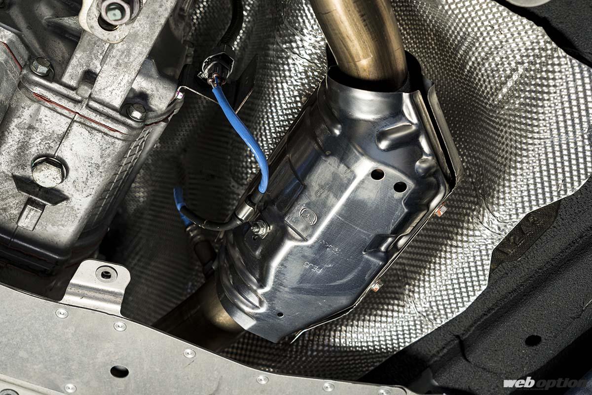 触媒の遮熱板にPEの刻印が記されている関係もあって、公認取得には排気系も一式PE-VPR用に変更する。ただし、アフターパーツのマフラーにはP5/PE共通で認証取得しているアイテムもあるため、愛用しているマフラーで公認OKなケースもあり。