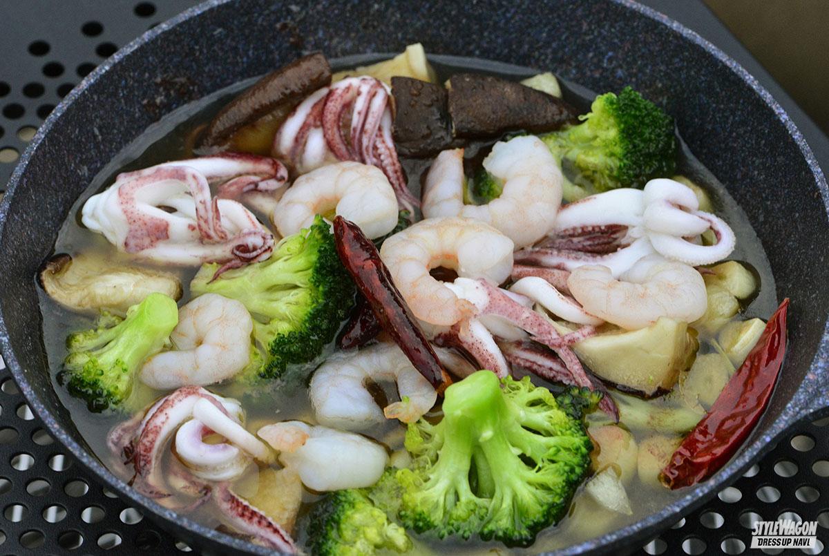 海鮮アヒージョ_今時のアヒージョの元なんかを使わずに、谷口氏が調合した調味料で作ったアヒージョ。鷹の爪最高でした〜。