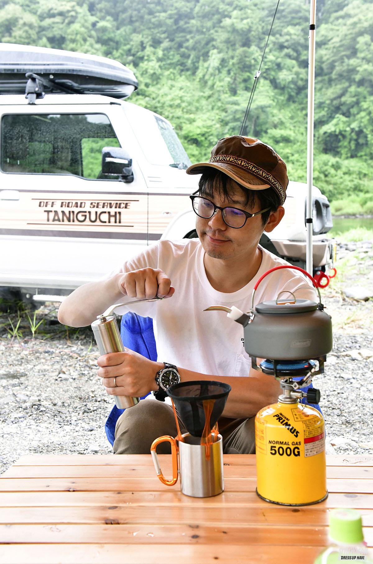 偉そうなことを言ったが、飯に関しては美味い方が良いに決まっている。余裕ぶっこけるのは、タニグチの谷口氏の料理が抜群に美味いから。毎回、趣向を凝らして美味い飯を準備してくれる谷口氏には感謝しかない。今回の飯は、半熟卵の豚肉巻き煮込みと、海鮮アヒージョと、アクアパッツァだ。もし、筆者が料理を担当していたら、100パーセント焼肉オンリーになってしまうところを、谷口氏は毎回手の込んだ料理を作ってくれる。2日目の朝には、前日の材料を生かしてトーストとアヒージョでモーニング。引き立てのコーヒーで目を覚ます。これがまた美味い。
