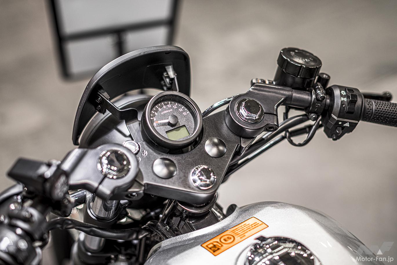 デザインはKTMのデザインでも知られるKISKAに在籍していたクレイグ=デント氏が担当。モノクロームに統一されたボディに、シングル風のトラッカーシート、低く構えるセパレートハンドル、17インチのダートトラックタイヤを合わせることで、クラシックカフェレーサースタイルに仕上げられています。