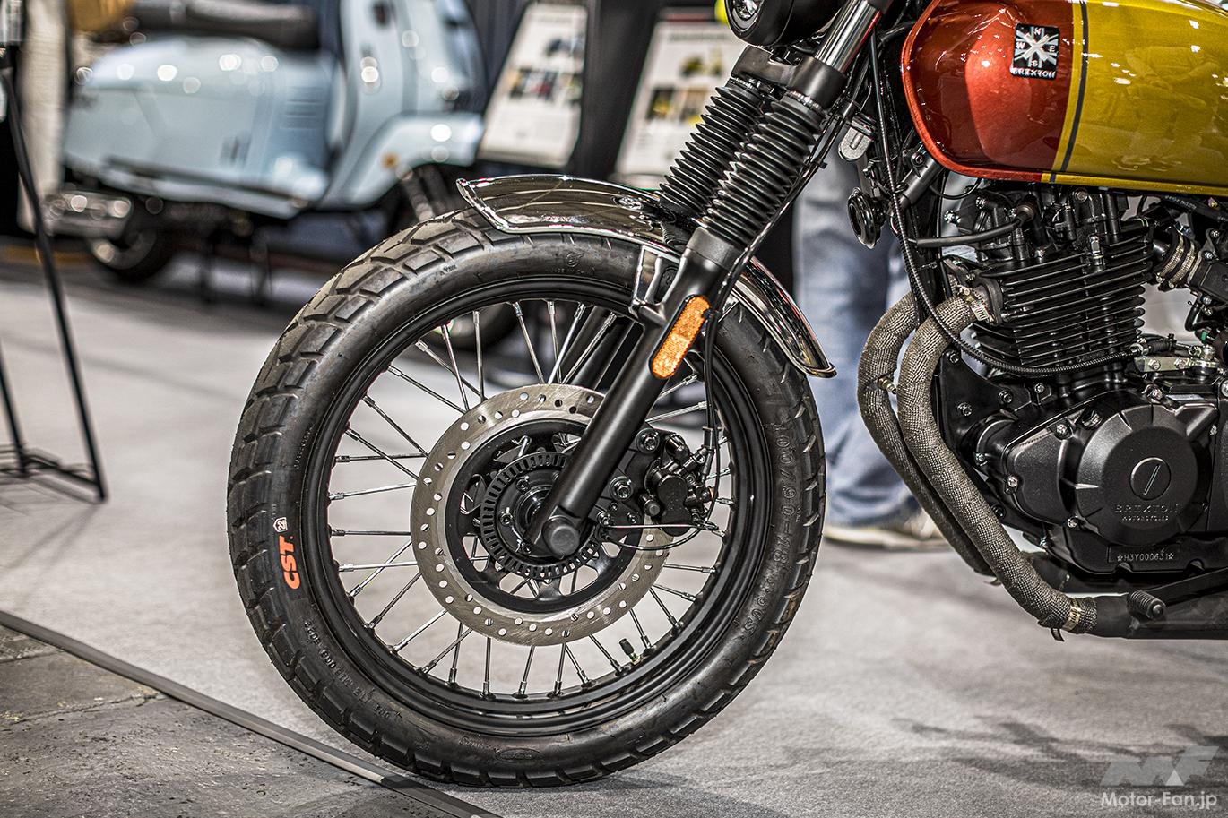 大阪モーターサイクルショー、モータリストブースに展示されていたこちらのマシン。まるでカスタム車のような出立ちですが、れっきとしたフルノーマル車で、このスタイルのまま購入できてしまいます。